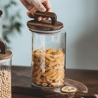 This glass storage jar is an elegant choice for kitchen storage. With a capacity of 800ml, it meets your daily ingredient storage needs. Made of high-quality glass, it is highly transparent and durable, allowing you to clearly see the contents of the jar. The simple cylindrical design, paired with a neutral-toned wooden lid, showcases a unique blend of nature and fashion. The safety-sealed lid design is not only easy to open and close but also effectively isolates air and odours, ensuring the freshness and taste of your food.