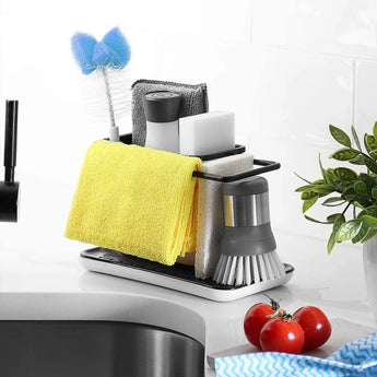 Organise your sink area with our kitchen organiser. This handy and practical accessory is ideal for tidying away cleaning brushes, sponges and cloths as well as storing washing up liquid. Crafted with BPA-free plastic, this sink organiser is very safe and durable. Caddy comes with a large draining plate to catch any excess water, so you can wave goodbye to soapy residue at the side of your sink. Simply detach the drip tray and reservoir below to clean it.