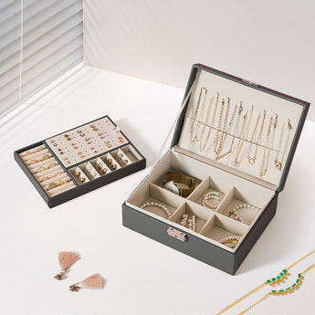 Lockable Double Tier Faux Leather Jewellery Organizer