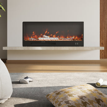 Bring warmth and modern elegance to your home with this recessed electric fireplace. Featuring a sleek finish and a flush-fit design, it creates a contemporary focal point. Lifelike flames flicker over resin logs and crystal accents, providing a stunning visual effect. With 12 flame colours, 6 brightness levels, and a smooth auto colour looping mode, you can tailor the ambience to suit any mood. Easy to operate via the touch panel, remote, or mobile app, it also offers temperature settings and a timer function for added comfort and control. Ideal for living rooms, bedrooms, or feature walls.