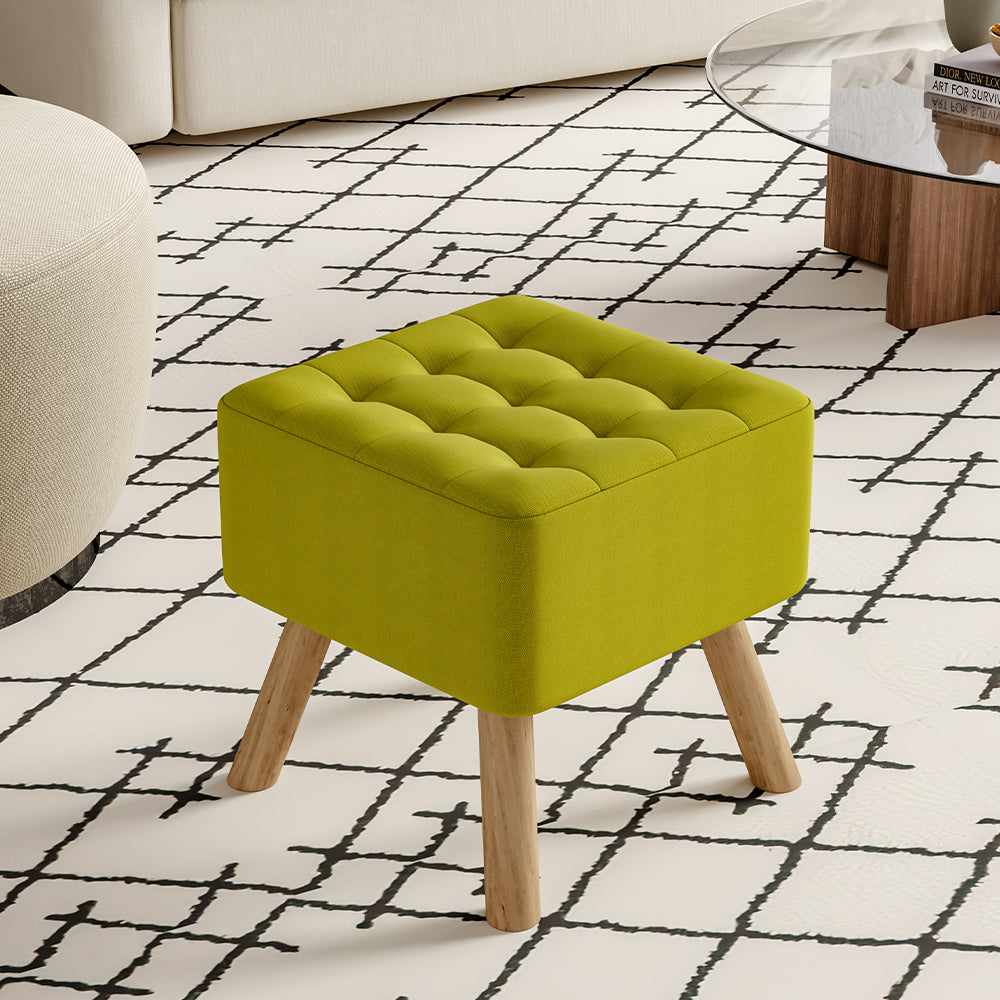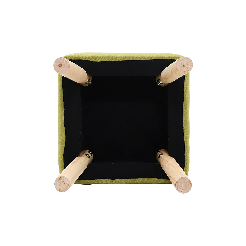 Linen Upholstered Footstool with Wooden Legs