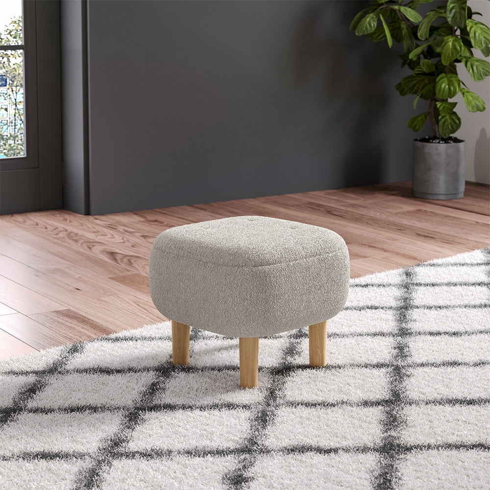 Padded Fabric Footrest Stool Square Wooden Footstool