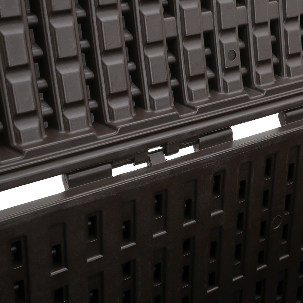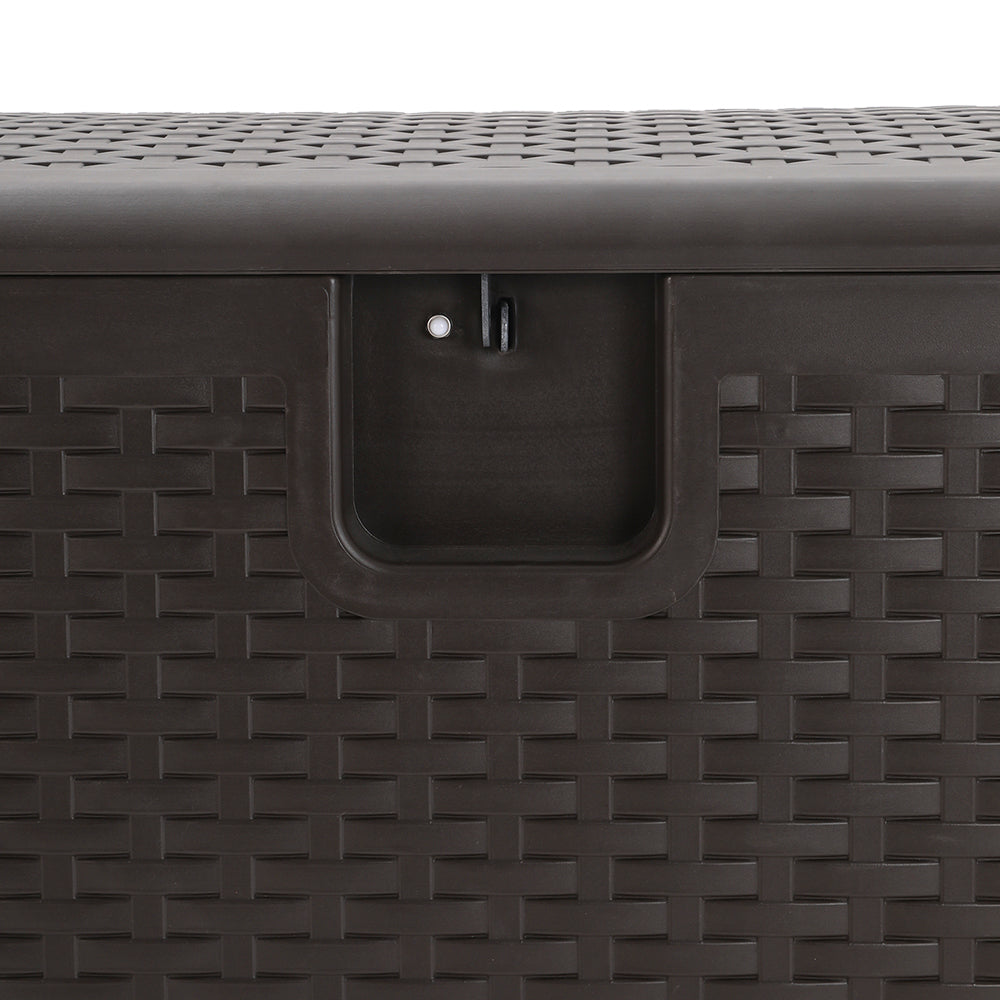 This Outdoor Storage Box makes organizing your pool equipment or outdoor items around your patio easier than ever. The surface features a rattan texture for a chic appearance, yet it is completely waterproof, ensuring that the items remain dry and clean when stored inside. Crafted from HDPE material, it features a strong plastic construction that blocks moisture and can withstand outdoor exposure to snow and rain. The hinged top allows for easy access, and the box is lockable (lock not included) for added security.