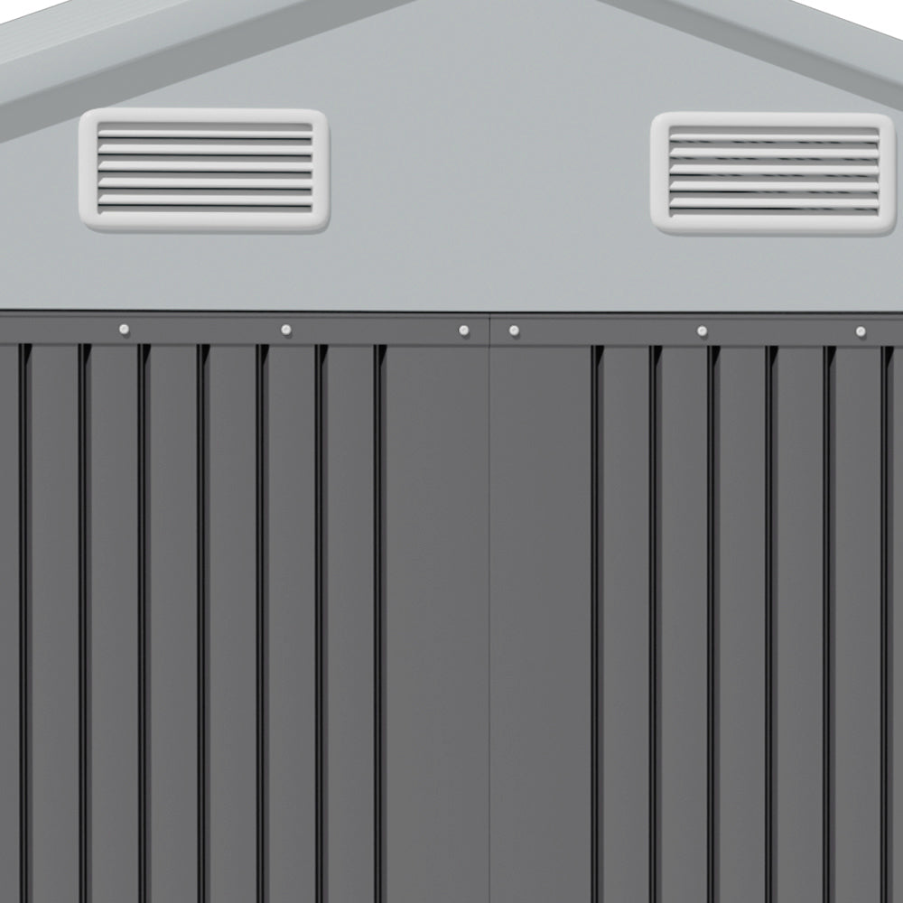 This Metal Garden Storage Shed is no doubt an ideal choice to keep your backyard neat and tidy. Constructed from high-quality steel sheet, the surface of this shed has been treated with an anti-rust coating to ensure durability over time. It is resistant to corrosion and all-weather conditions and thus requires minimal maintenance. It offers ample space for your push lawn mower and other outdoor items while providing reliable protection against UV, wind and rain. Additionally, ventilation louvers are incorporated to promote air circulation inside.
