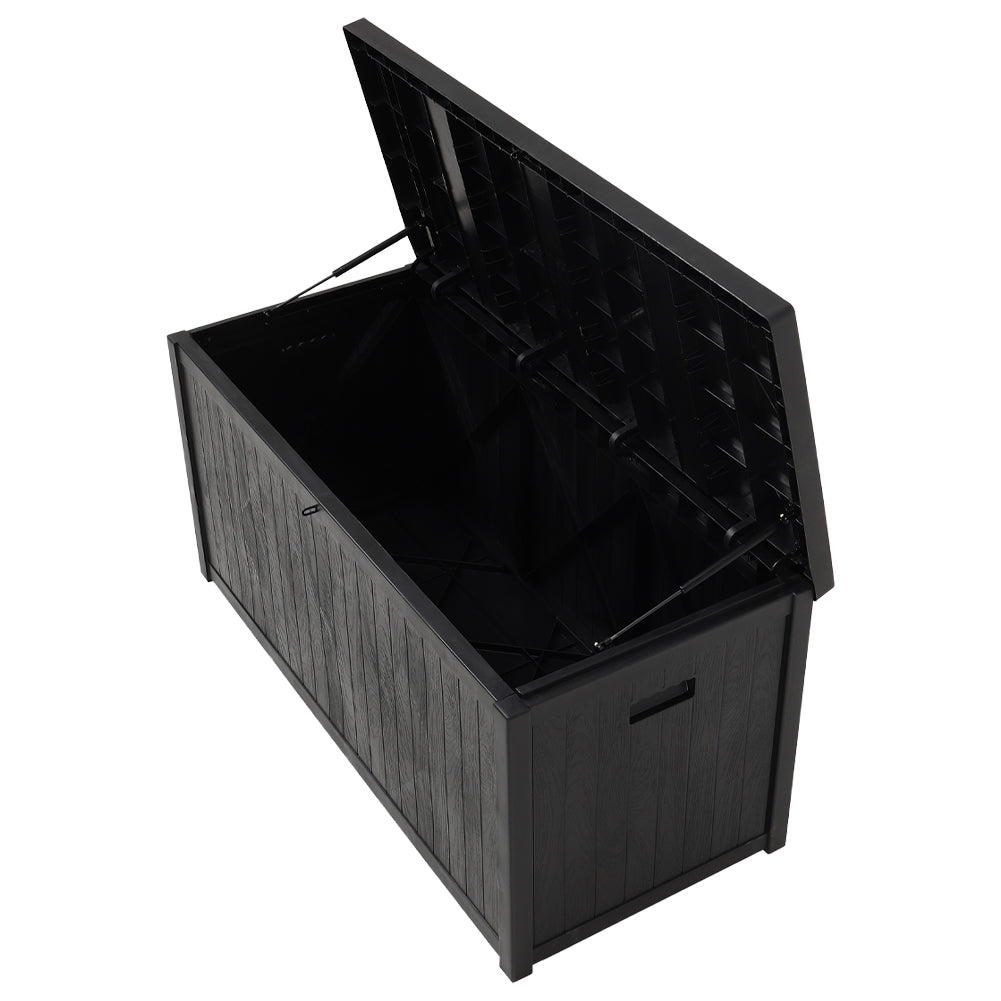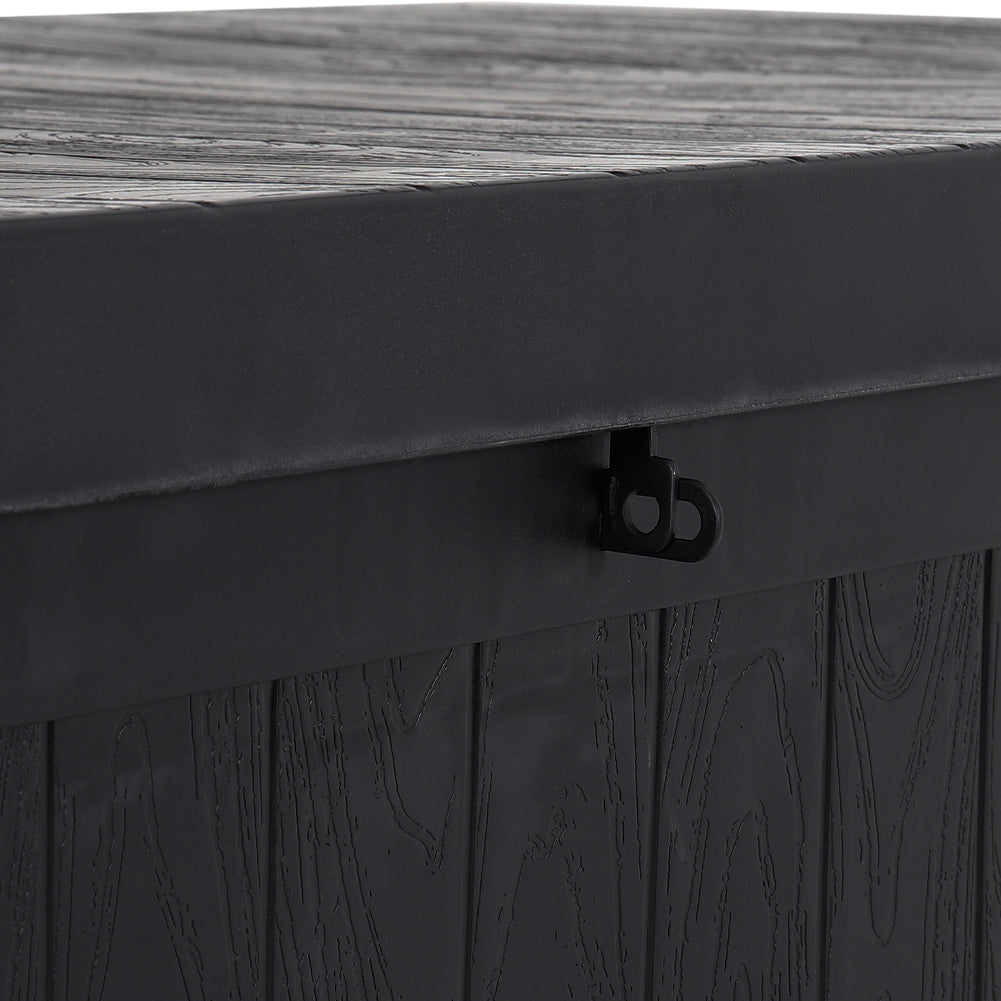 • Wooden Stylish: This outdoor storage features a wooden style which is a black finish with wooden patterns bringing a homely adornment that will add natural beauty to your space.
