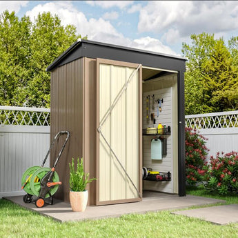 This shed is perfect for your outdoor storage needs. The shed is fire and rot-resistant so no need to worry about damage to your tools. It's the perfect tool shed for your yard!