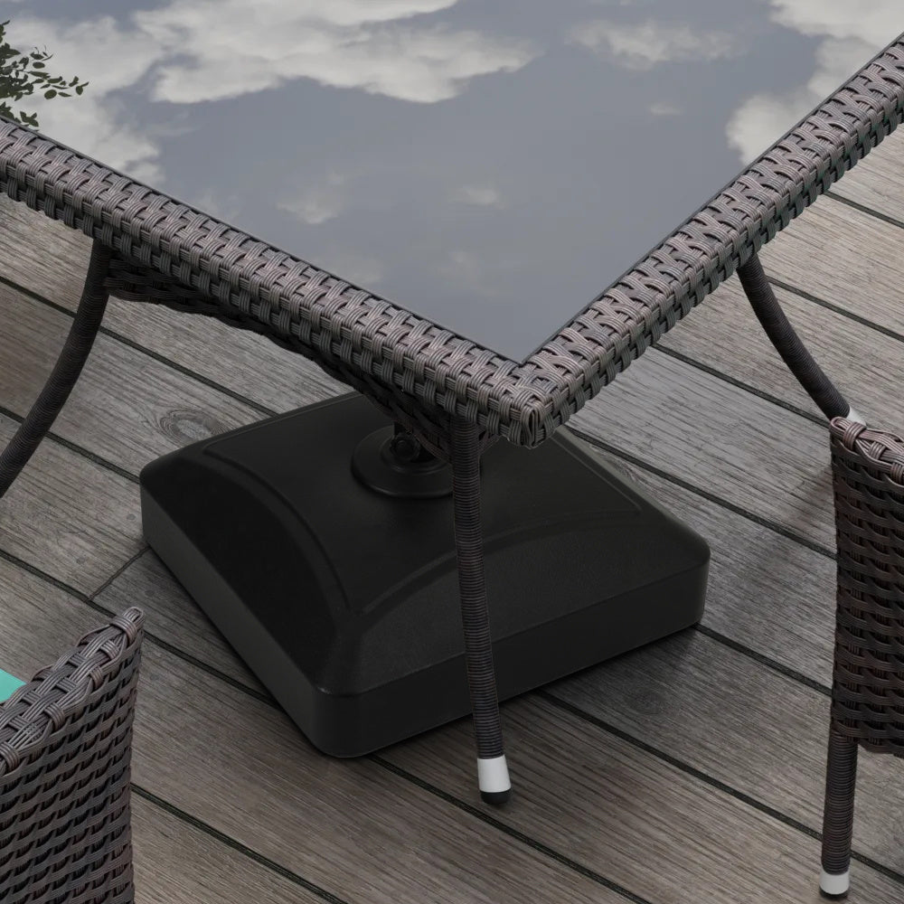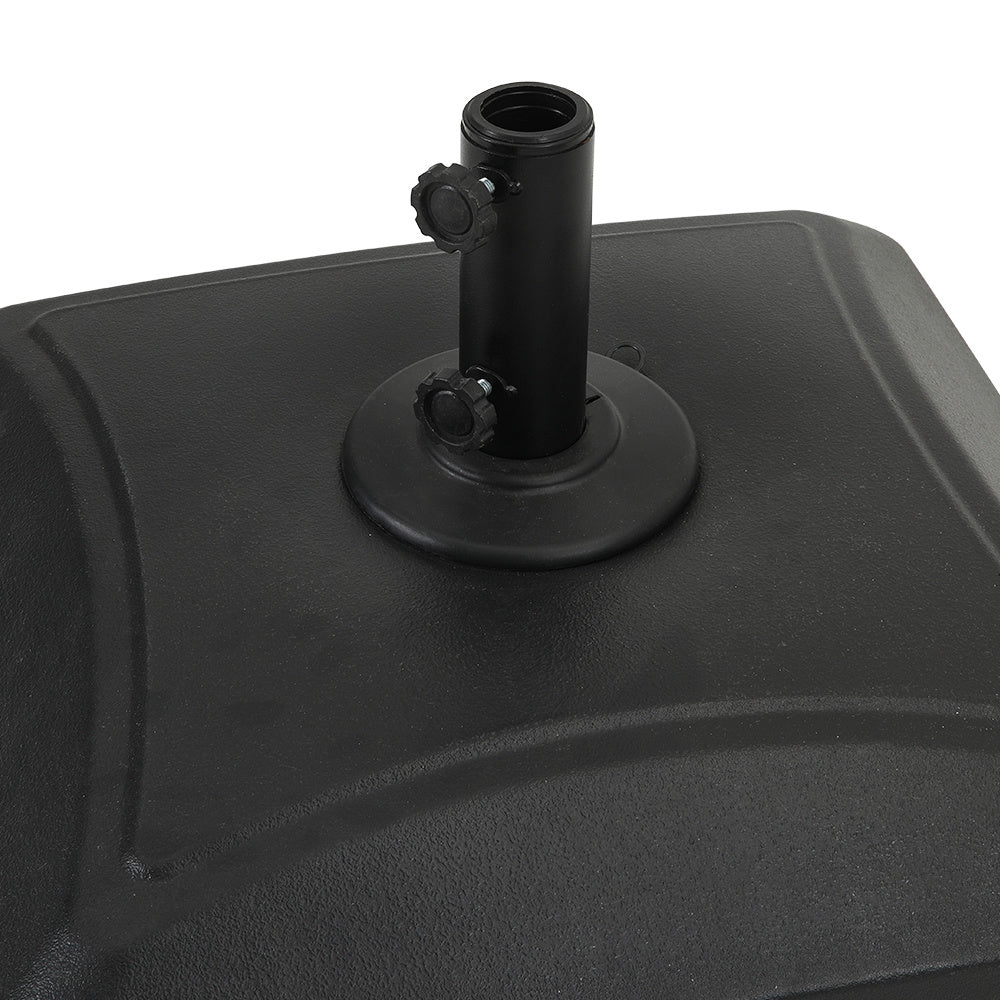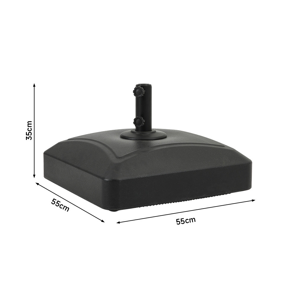 Transform your outdoor haven with the Patio Umbrella Stand, skillfully crafted to match and uphold your umbrella. Constructed with premium components including a sturdy HDPE base and corrosion-resistant metal pole, this stand is engineered to endure diverse weather conditions. With a maximum weight capacity of 35KG, it can be filled with water or sand for enhanced stability. Quickly secure your umbrella by tightening the knob on the pole, and take note that this base is ideal for poles with a diameter of 38 or 48 cents.