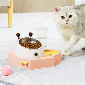 Ensure your pets enjoy every meal with our thoughtfully designed Pet Feeder and Water Dispenser Set. It provides a 15-degree tilted stainless steel bowl, reducing the strain on your pet���������������������������������������������������������������������������������s neck and allowing them to eat comfortably. Beneath the main bowl is a hidden slow feeder, designed for pets that tend to eat too quickly, reducing the risk of choking and promoting better digestion. The right side of the set features an automatic water dispenser with a gravity-fed design. Whether you have a cat or dog, this set is perfect for promoting healthy eating habits wh"1">Features