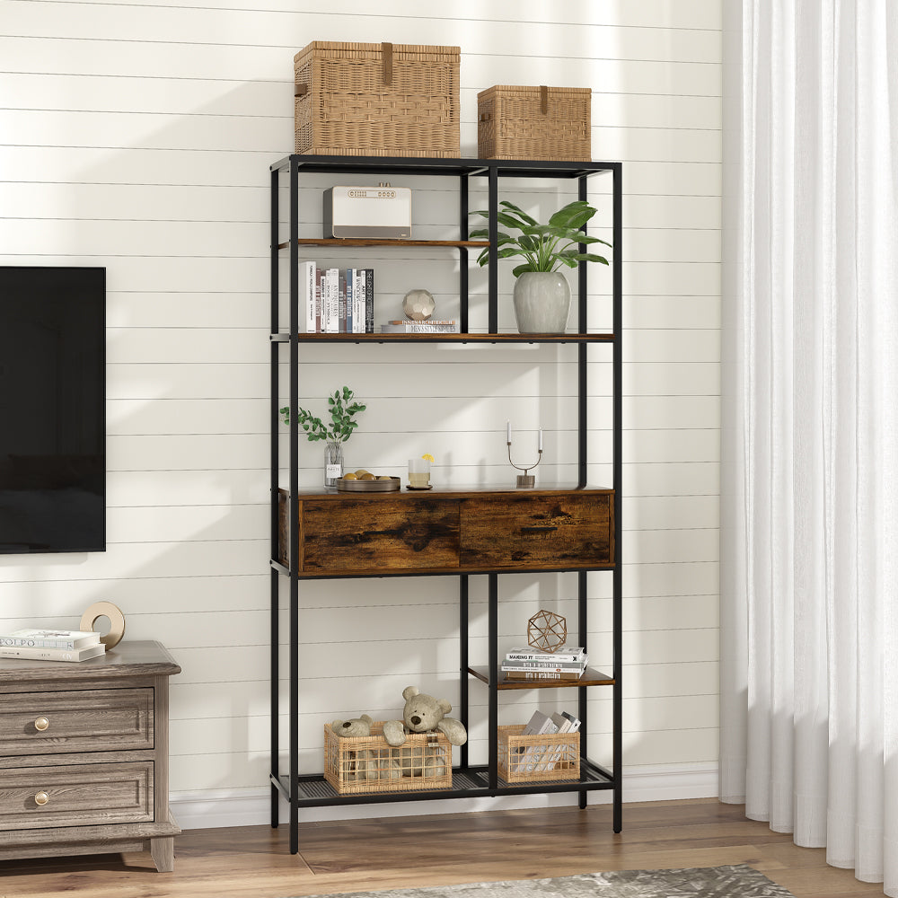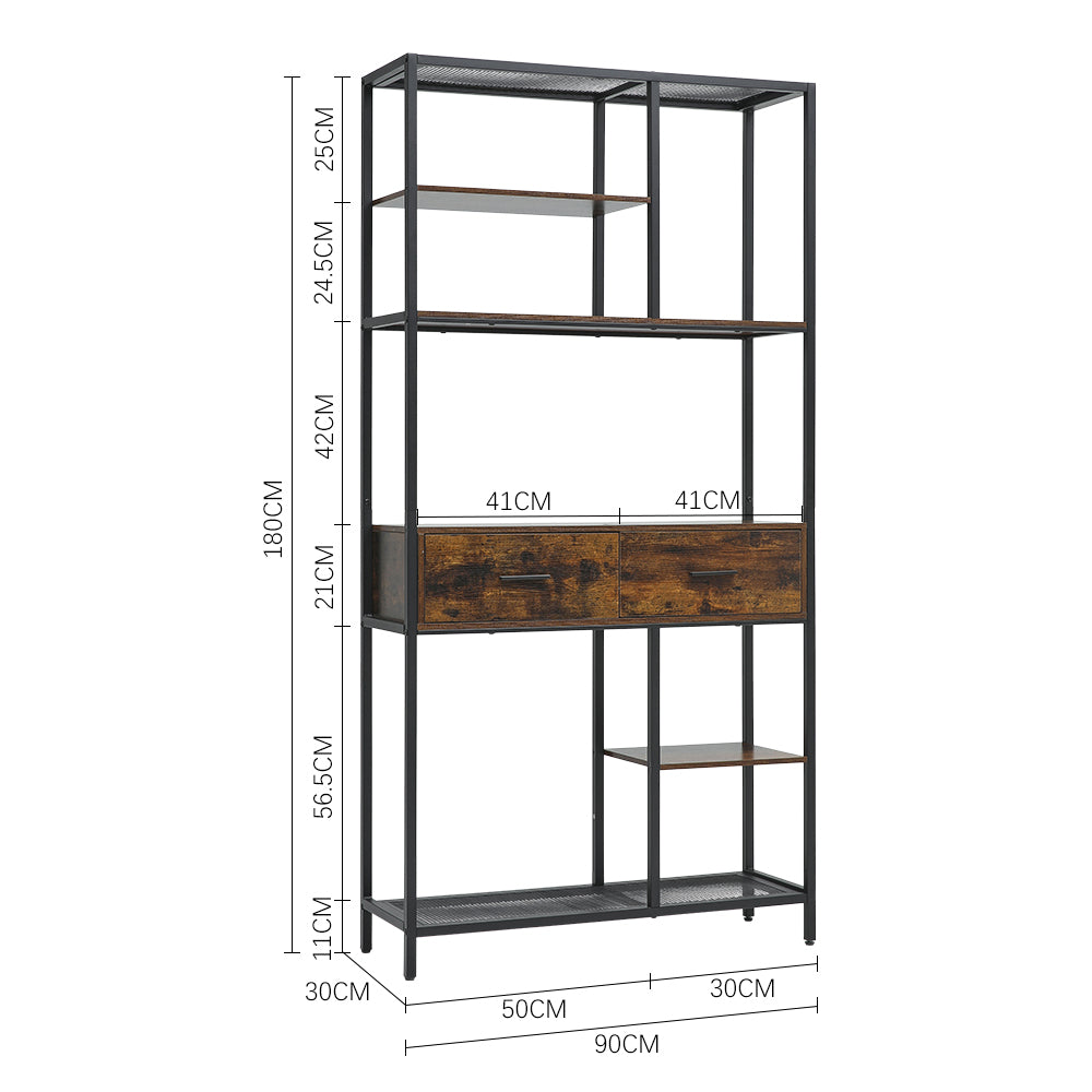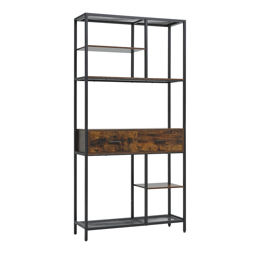 6-Tiered Metal-Framed Storage Shelf with 2 Drawers