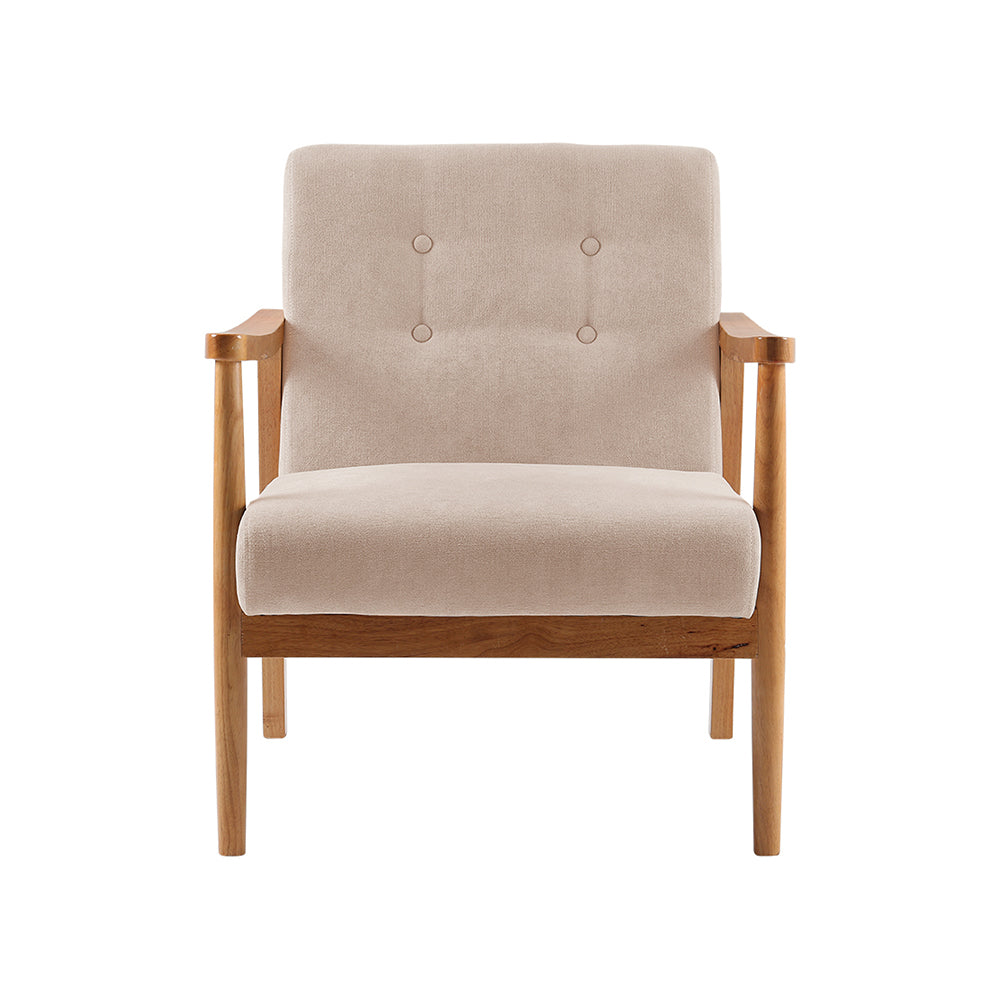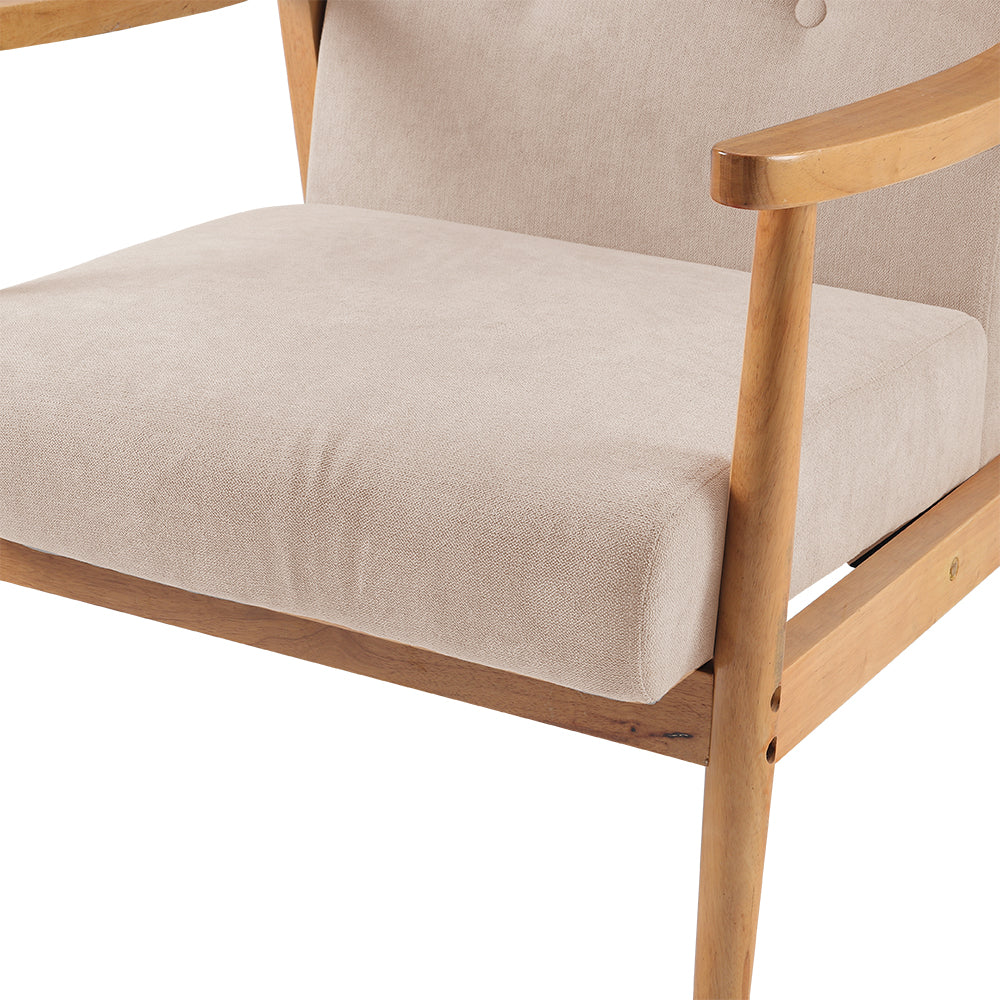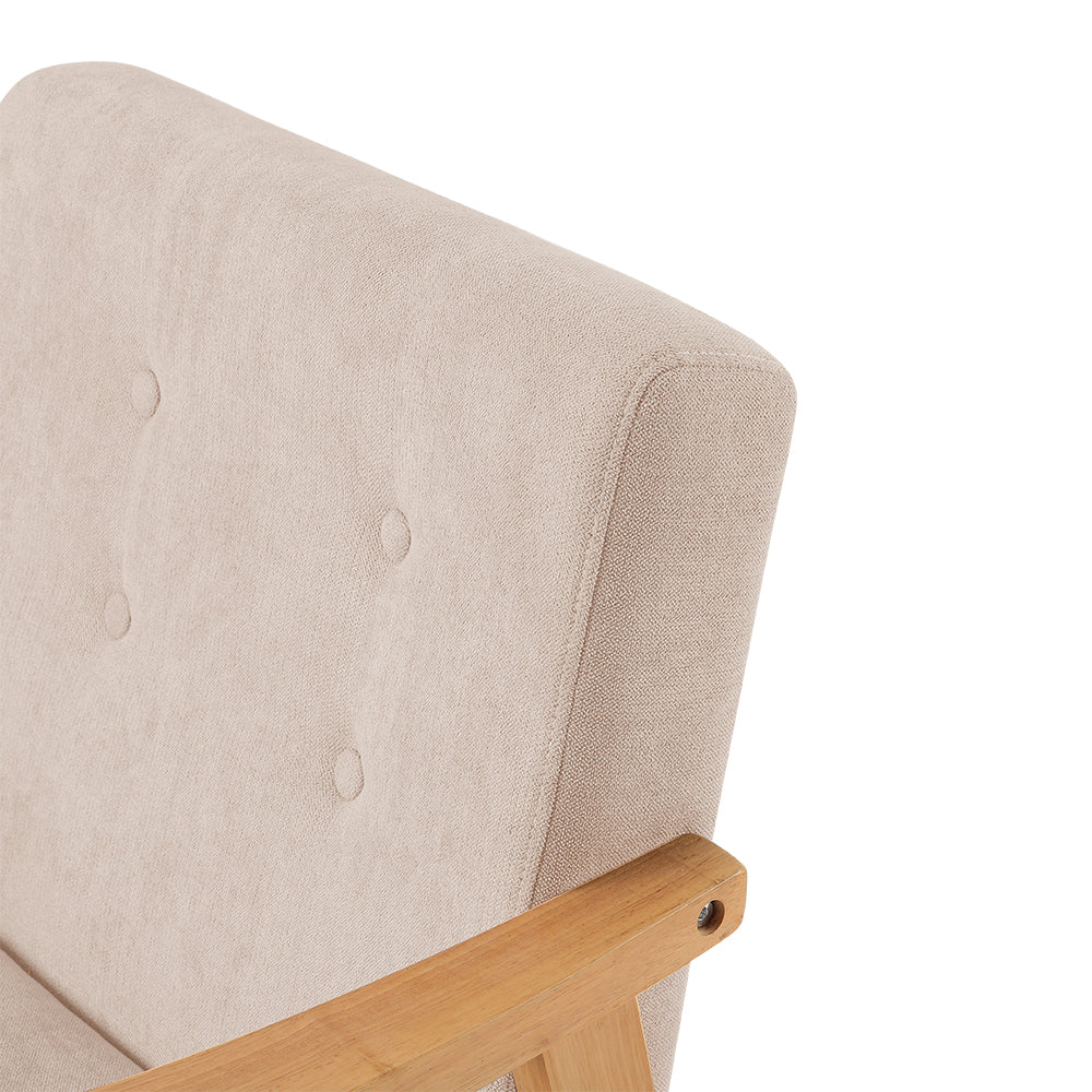 This armchair should be high on your list to enrich your living space, both in style and functionality. You’ll be impressed by its outstanding craftsmanship, including the natural wooden frame and densely padded cushion. Moreover, the armrests are at the right height for you to rest on. It promises to serve you with comfort for years to come. Covered with soft fabric in a classic colour, the chair is also easy to clean.