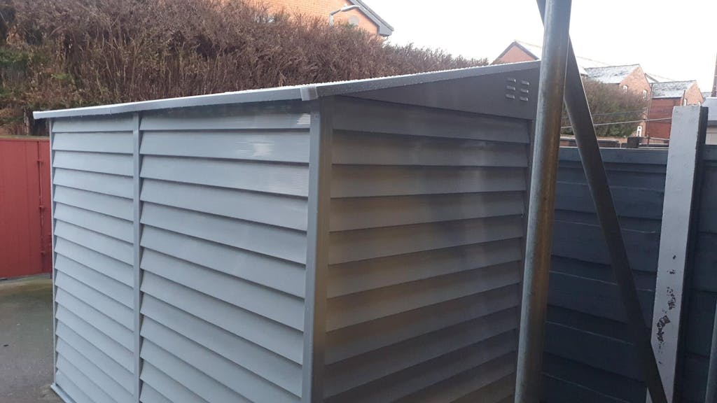 • This storage shed comes with four hooks for increased storage and hanging options.