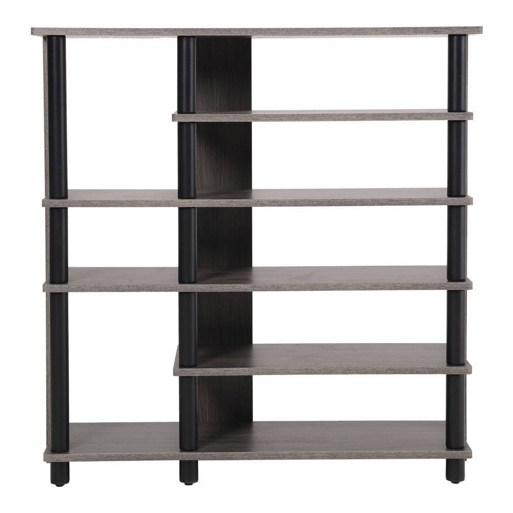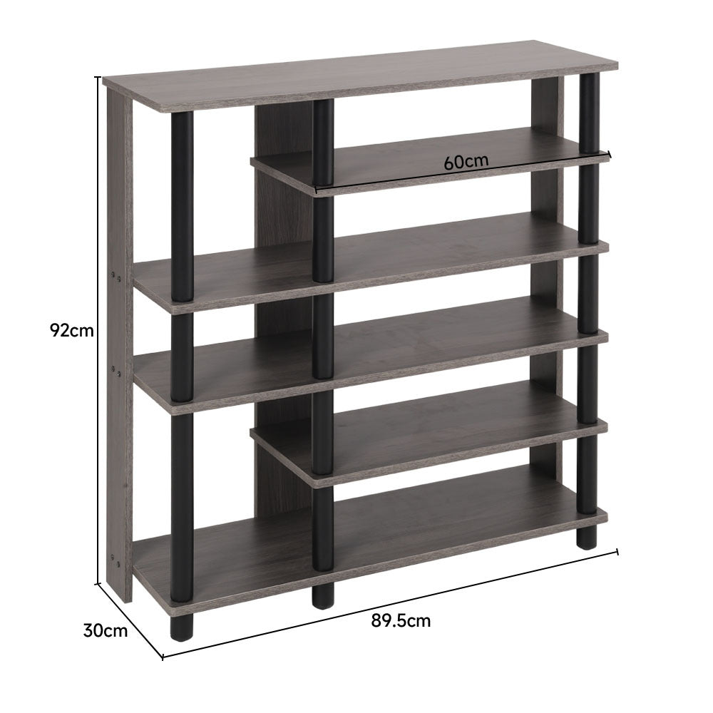 Maximize your home's organization potential with this efficient and stylish shoe rack. It features five identical and three varying height shelves, making it suitable for all types of footwear. Its compact design is ideal for smaller spaces, bringing order to any chaos.