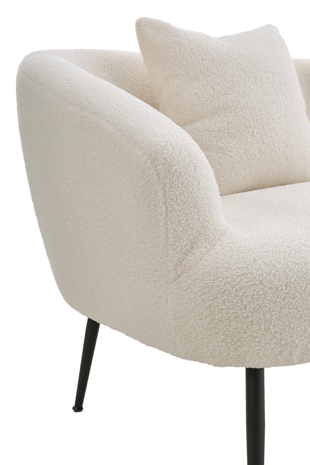 Sink into the plush comfort of the White Teddy Fabric Loveseat. Crafted with a sturdy wood frame, it boasts a soft shape with curved arms and a dense foam-filled back for an irresistibly cozy feel that's perfect for curling up with a book. Slim, angled legs lend a modern touch to its overall design, making it a stylish choice for any living room.