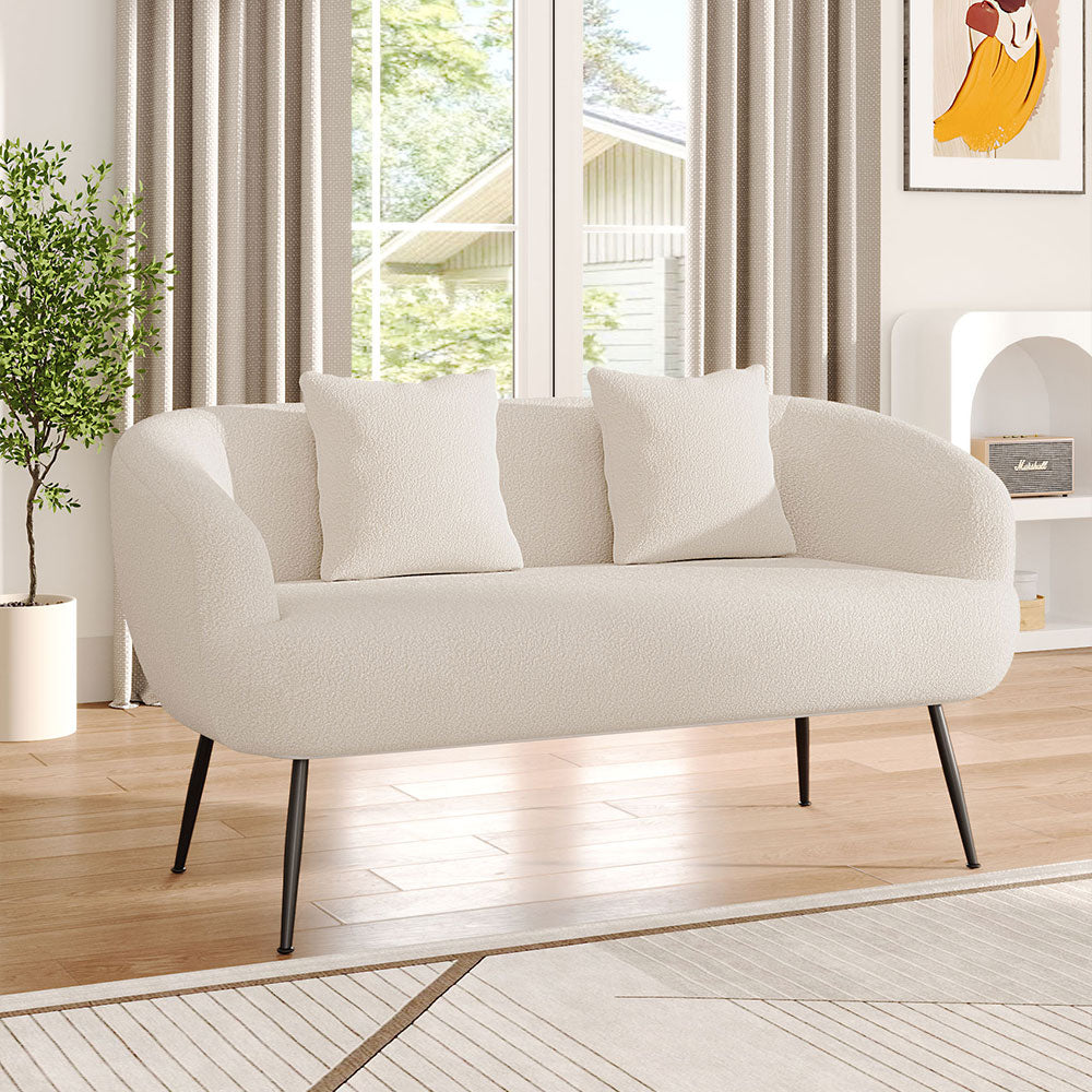 140cm W Teddy Fabric Loveseat with Metal Legs, White