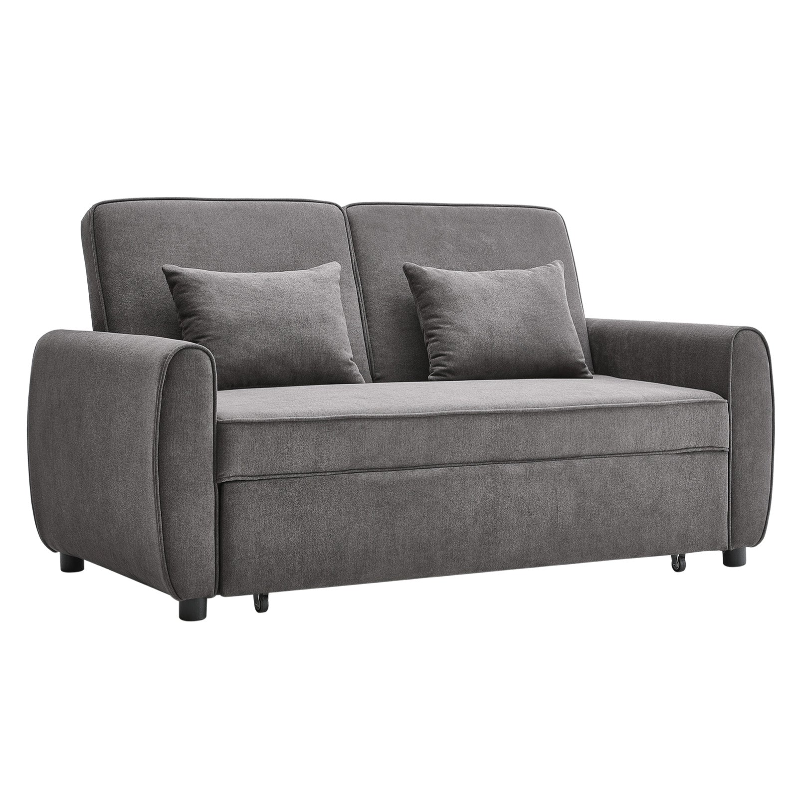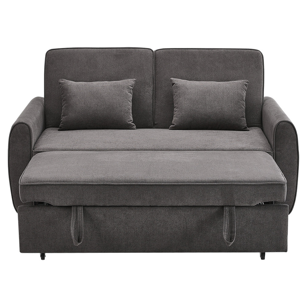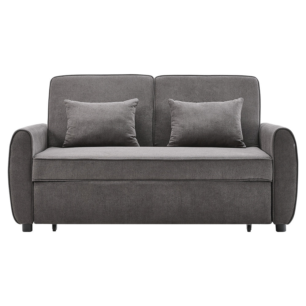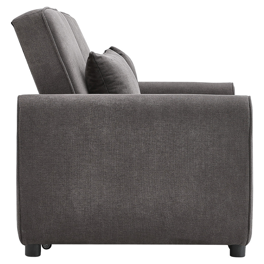 Grey Linen Upholstered 2 Seater Convertible Fabric Sleeper Sofa Bed with 2 Pillows