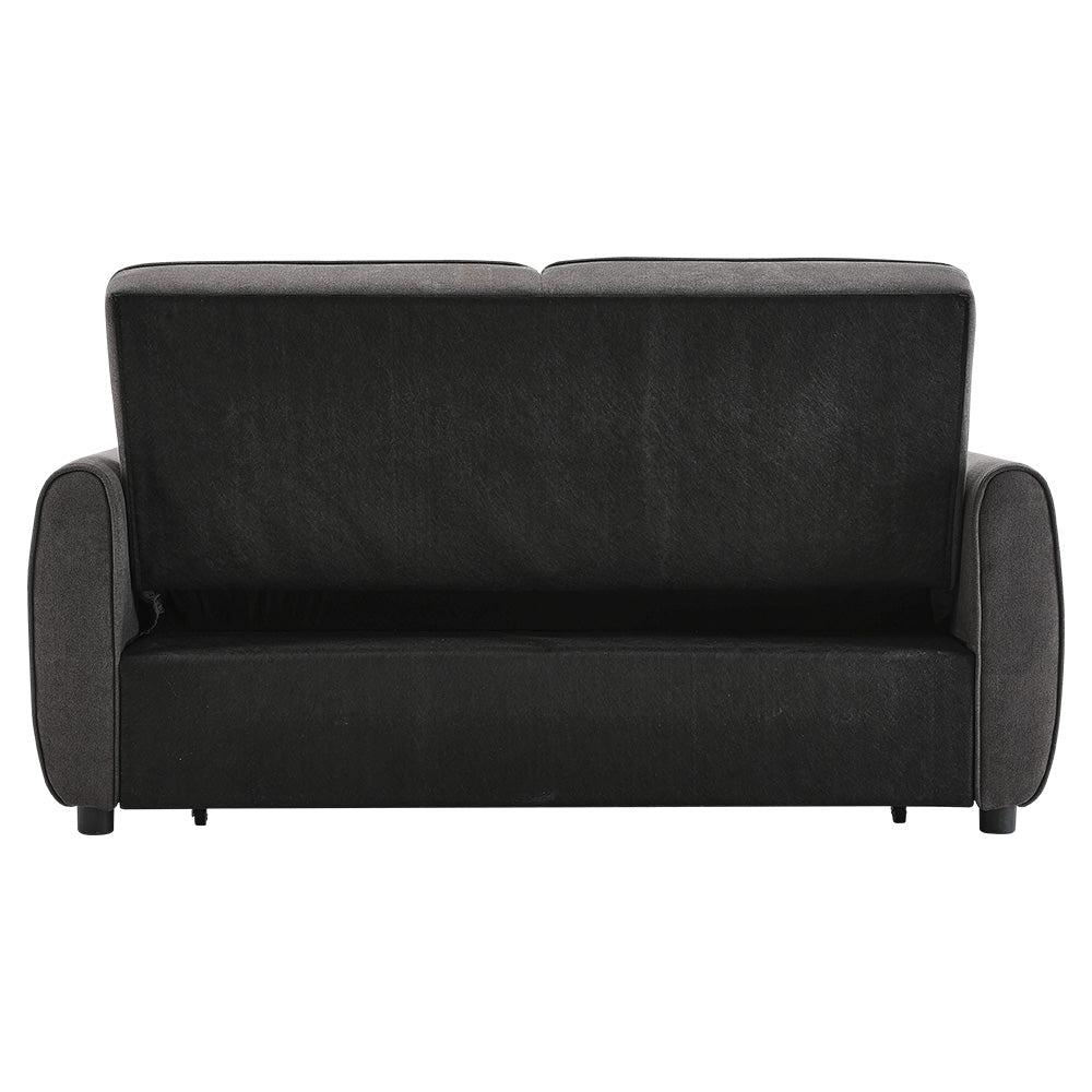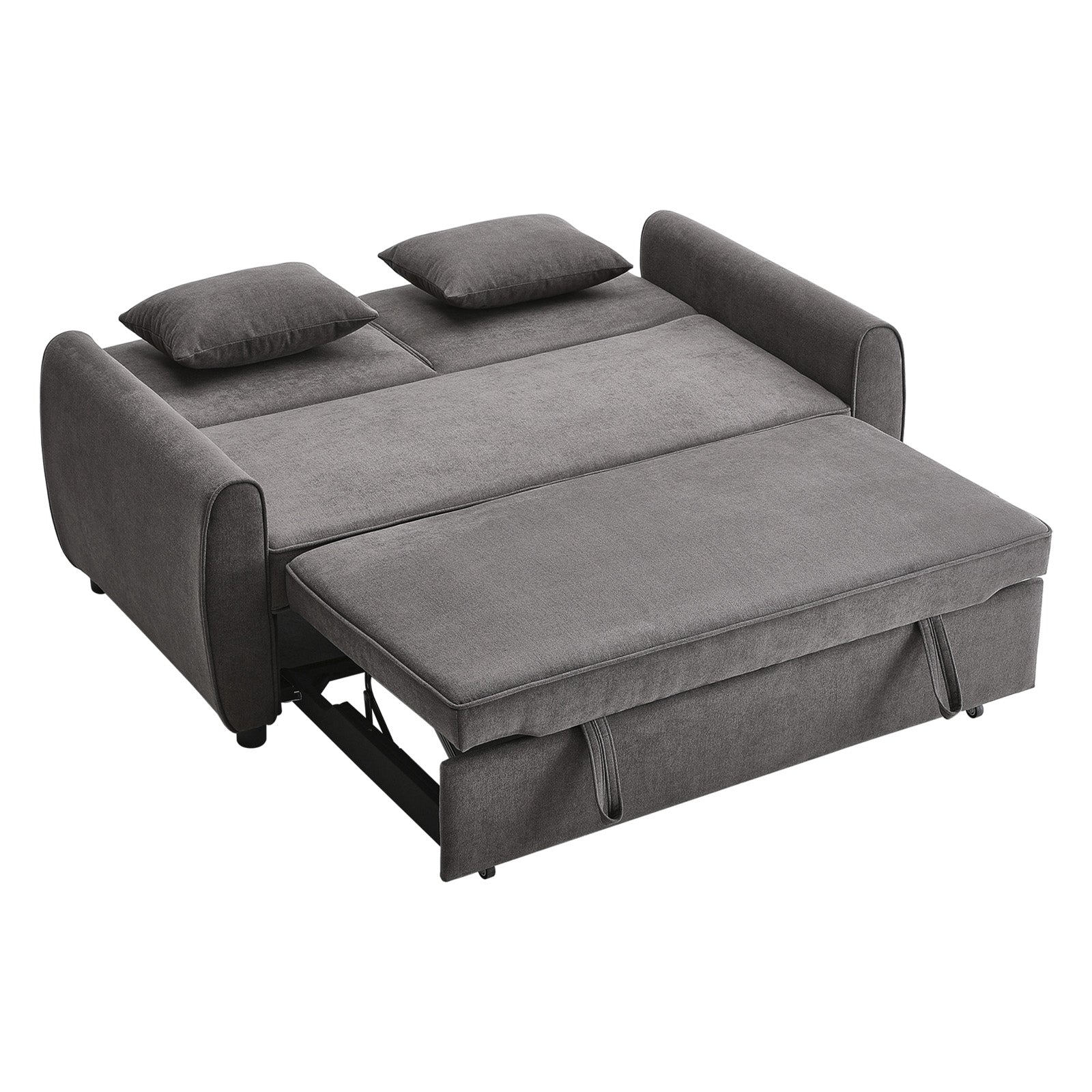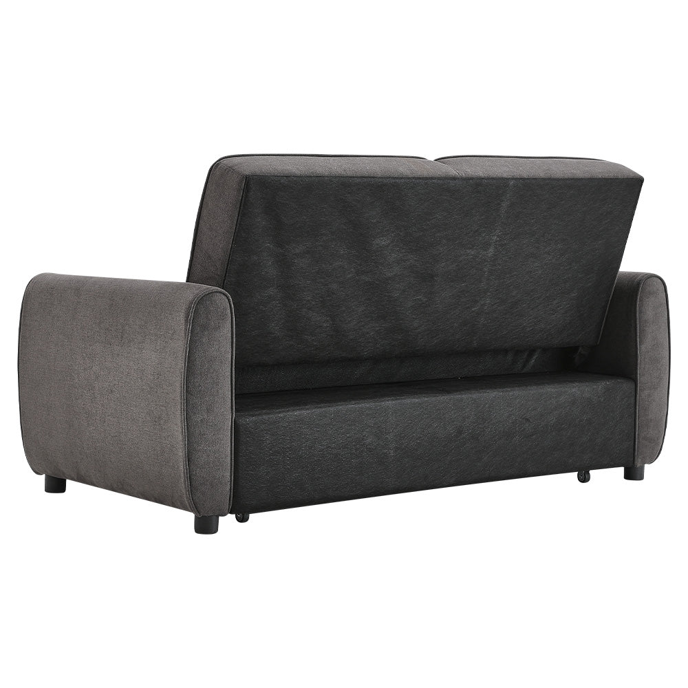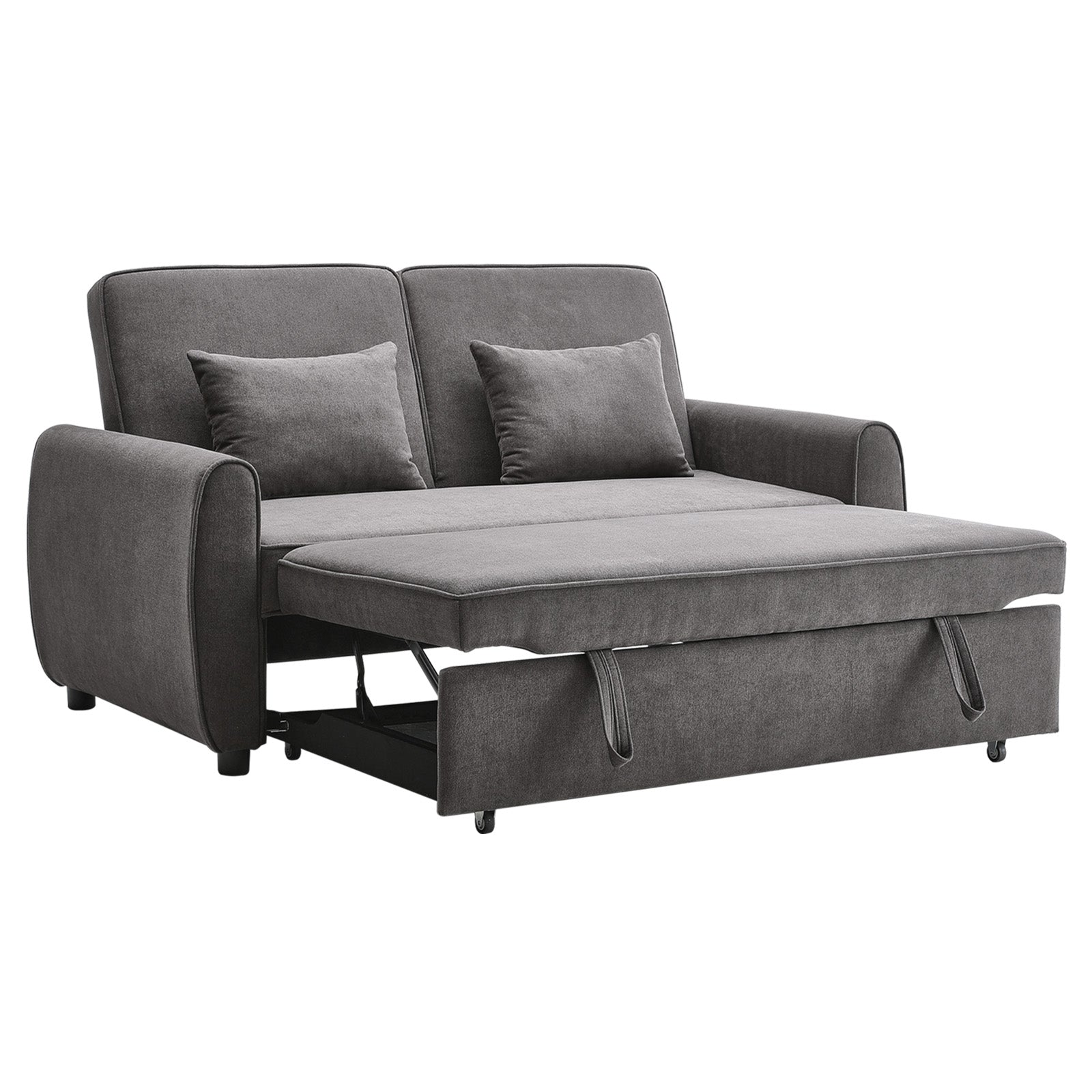 Grey Linen Upholstered 2 Seater Convertible Fabric Sleeper Sofa Bed with 2 Pillows