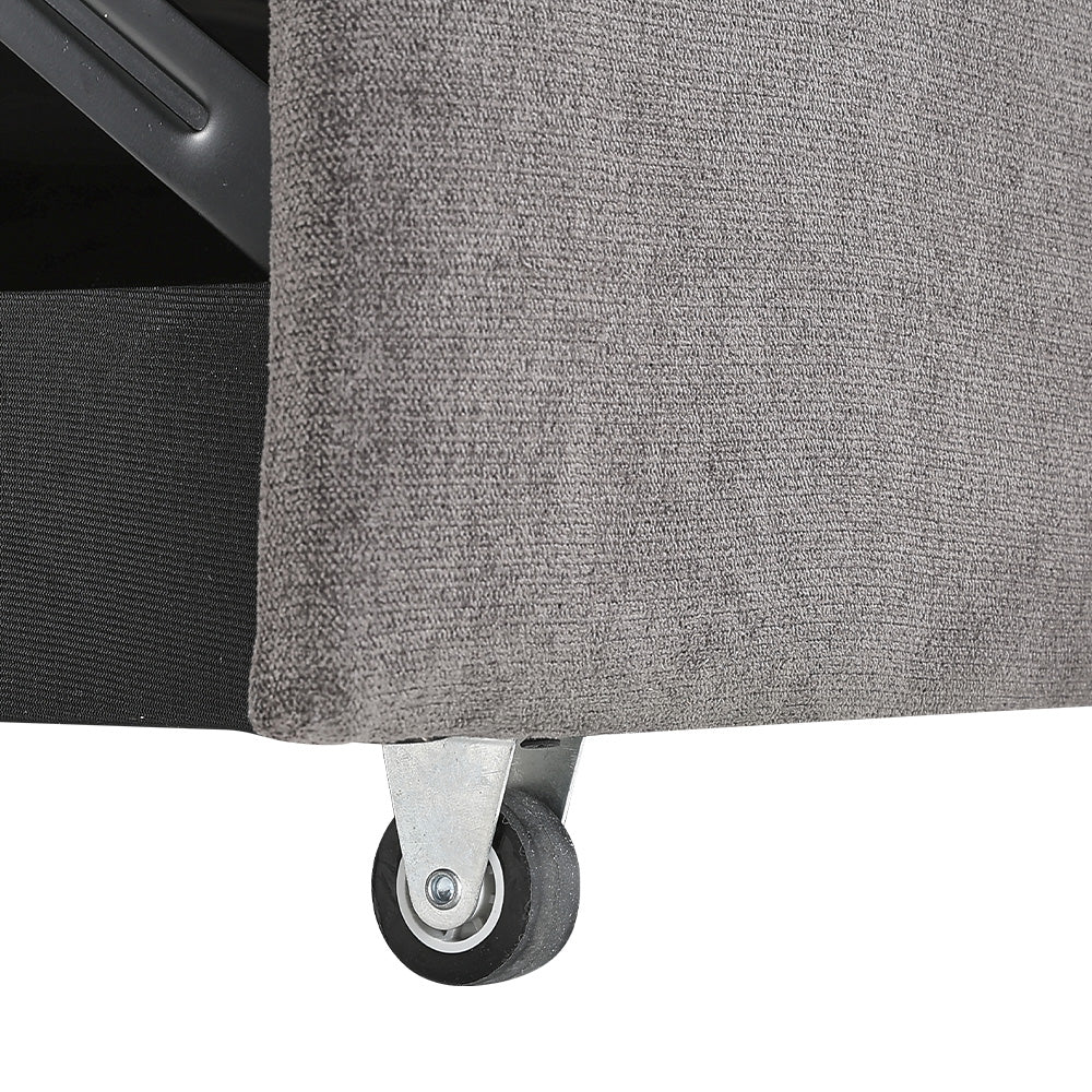 When it comes to comfort and convenience, our grey linen upholstered convertible sofa bed is a master at providing all of that and more. Thanks to a clever multiposition mechanism, it transitions from sofa, to lounger, to bed, allowing you to enjoy many forms of relaxation and turn any room into an instant sleepover space. The pillow-top design is soft, stylish and simply irresistible, inspiring everyone to take a seat or a snooze. The timeless grey color complements various interior decor styles.
