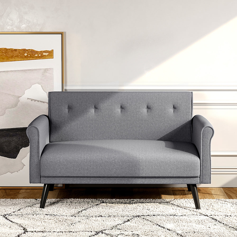Linen Upholstered 2-Seater Sofa Loveseat with Rolled Arms