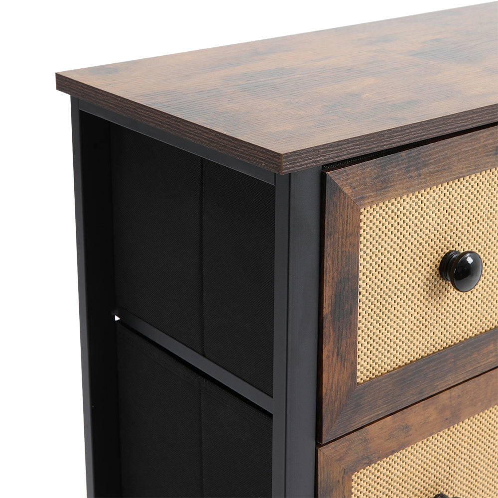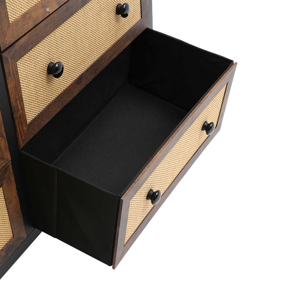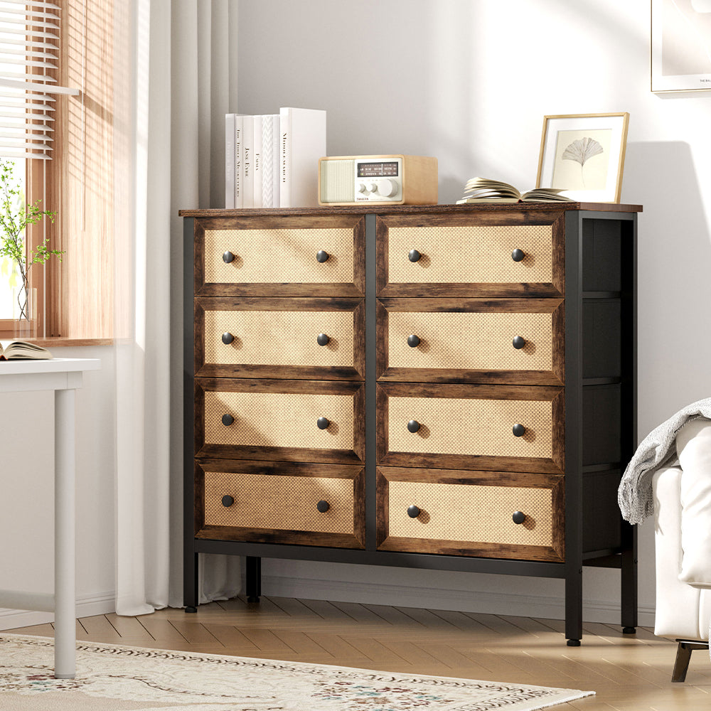 120cm W 8-Drawer Rustic Rattan Storage Cabinet