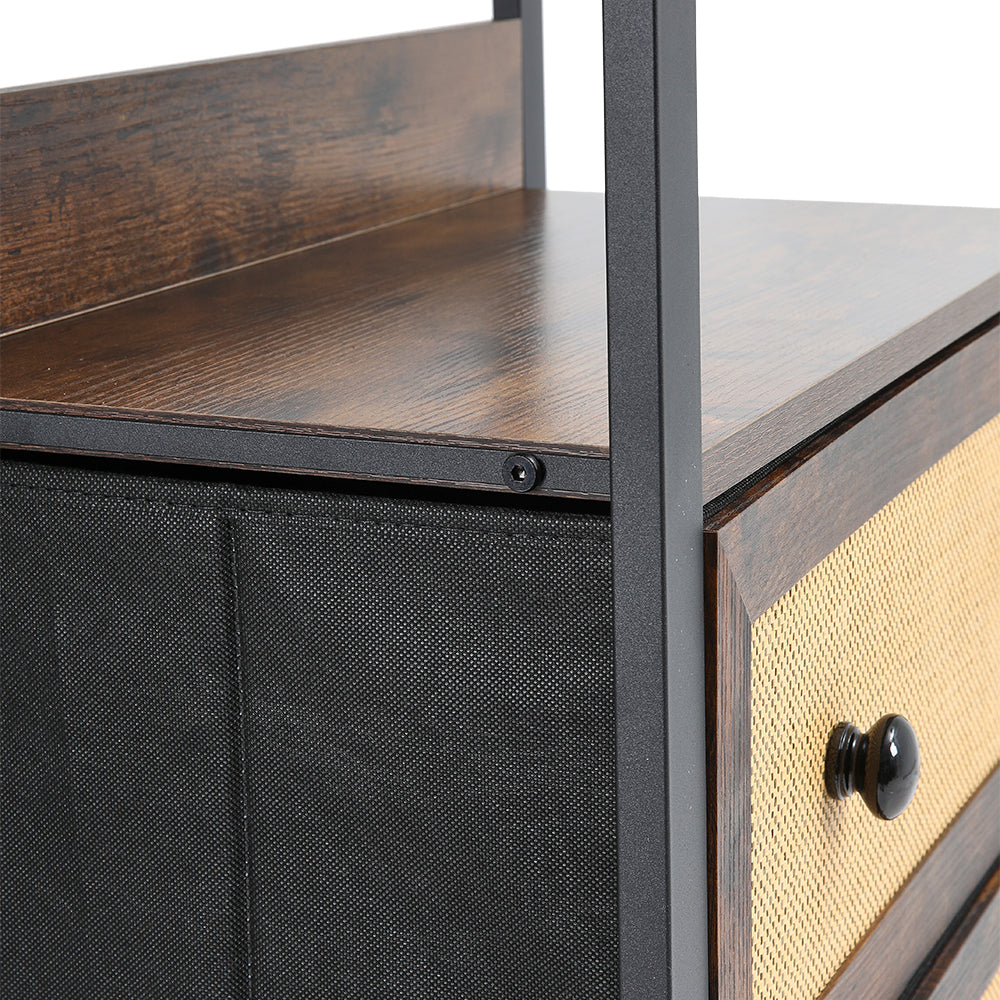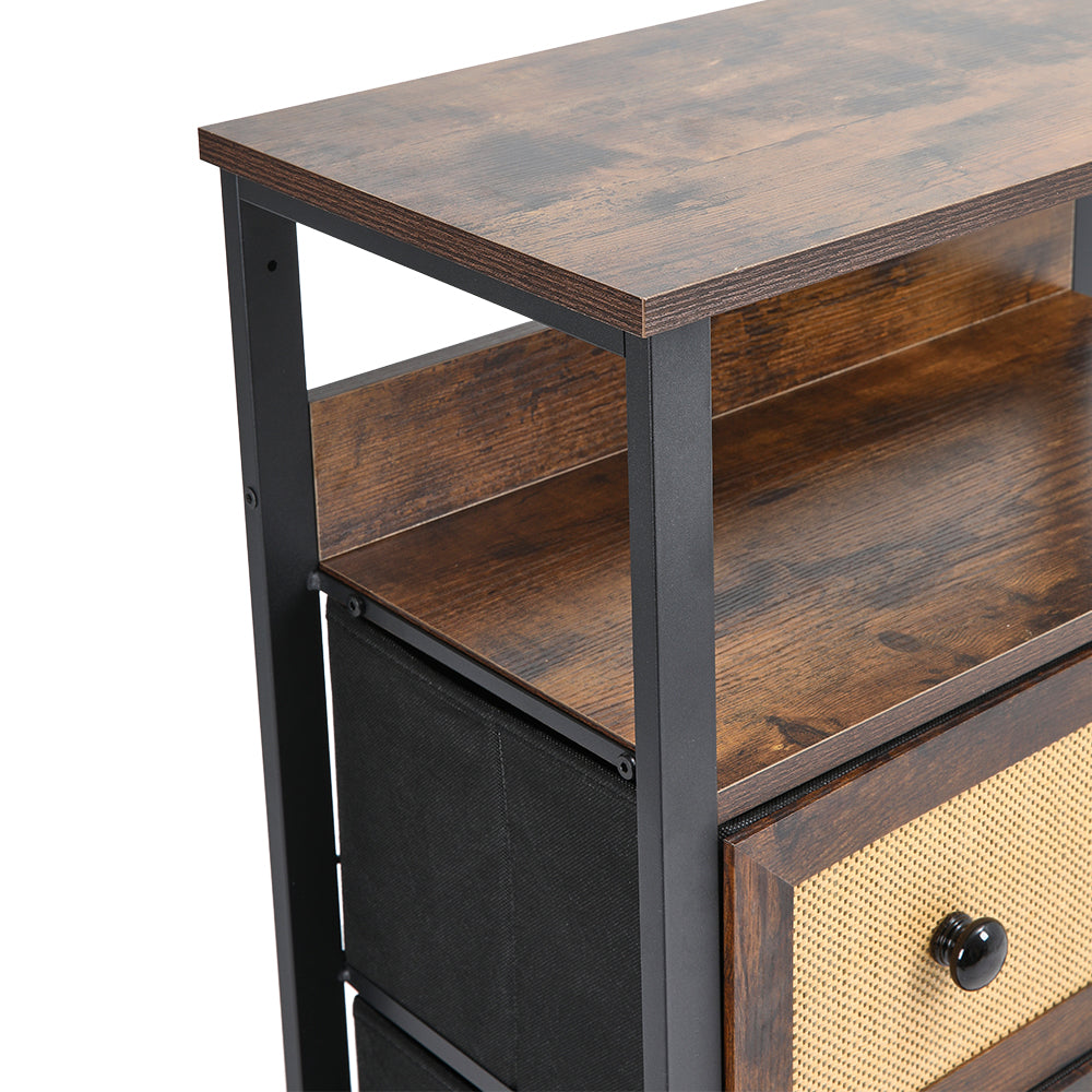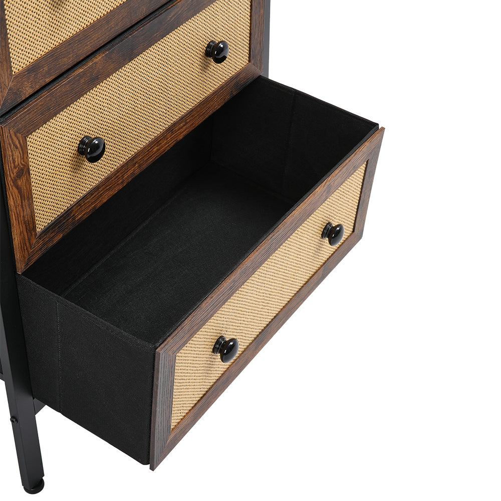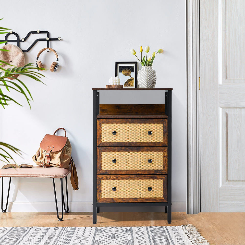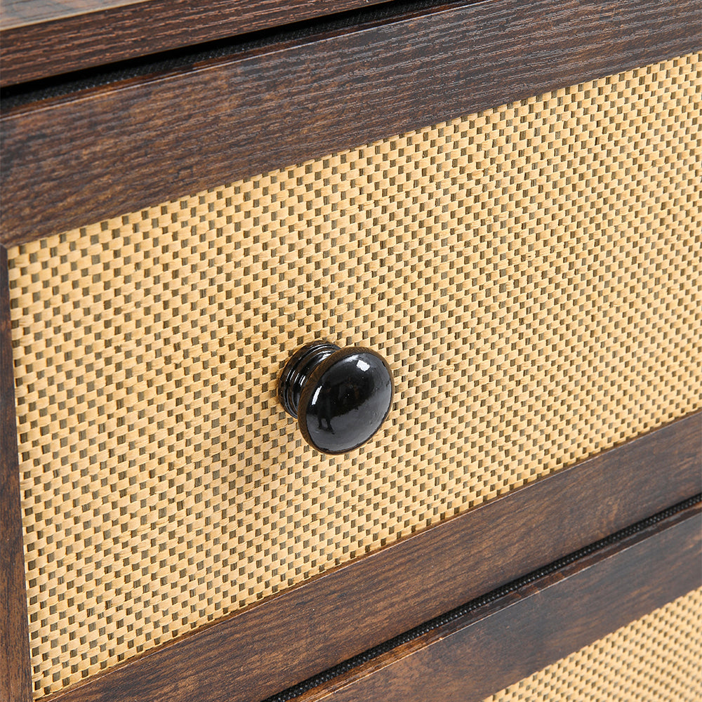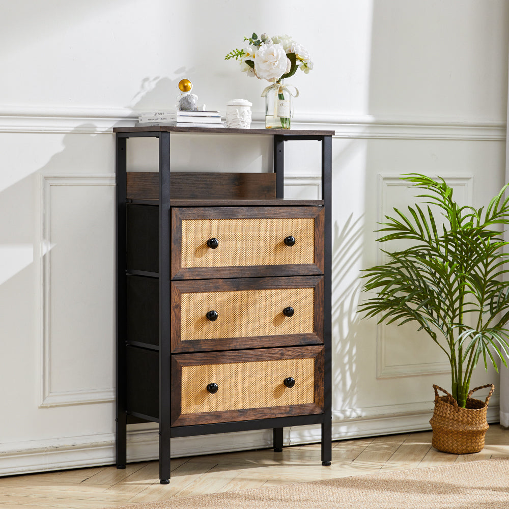 3-Drawer Rustic Rattan Storage Cabinet with Shelf