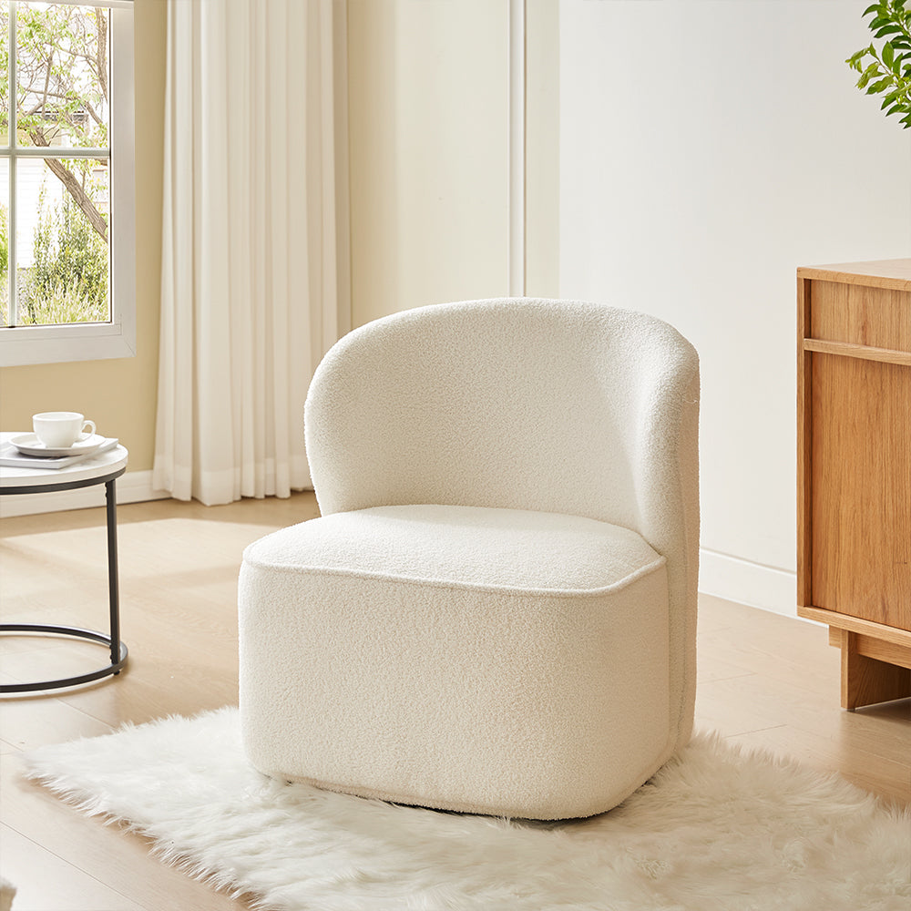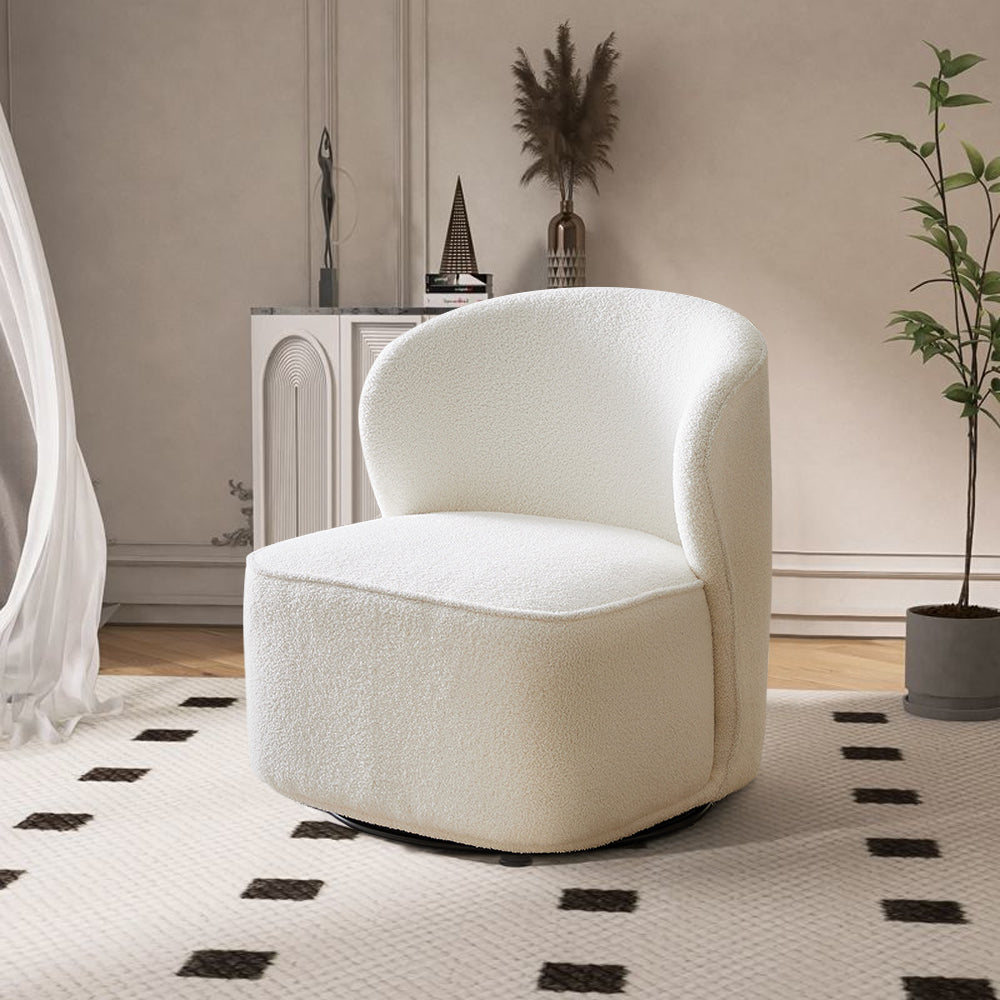 Experience ultimate comfort with this premium swivel chair featuring luxurious sherpa upholstery. Not only is the rich fabric visually appealing, but it is also highly durable. Relax into the generously padded sponge seat cushions, while the inwardly curved backrests offer optimal support for reading or watching TV. The swivel function allows for unrestricted rotation, while the neutral color and clean design seamlessly integrate into any home decor.