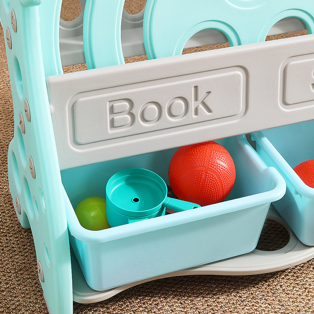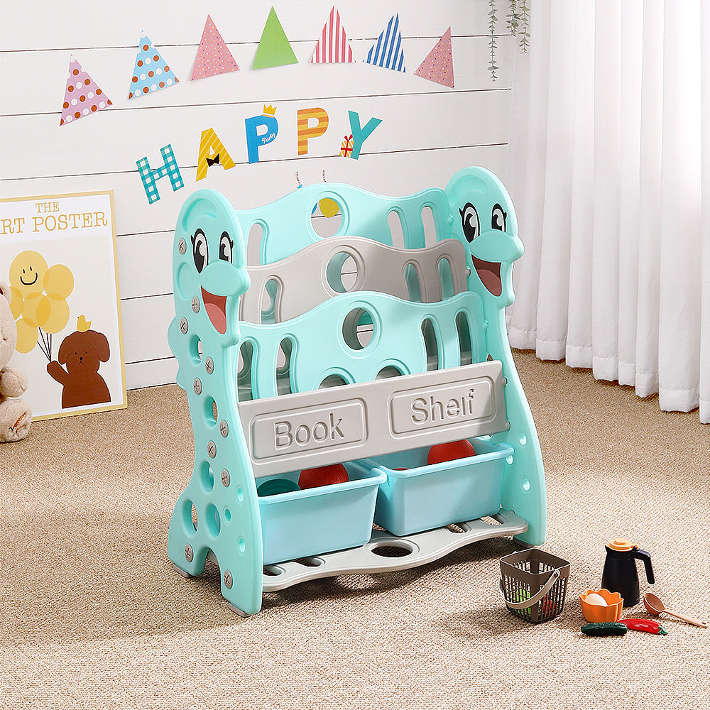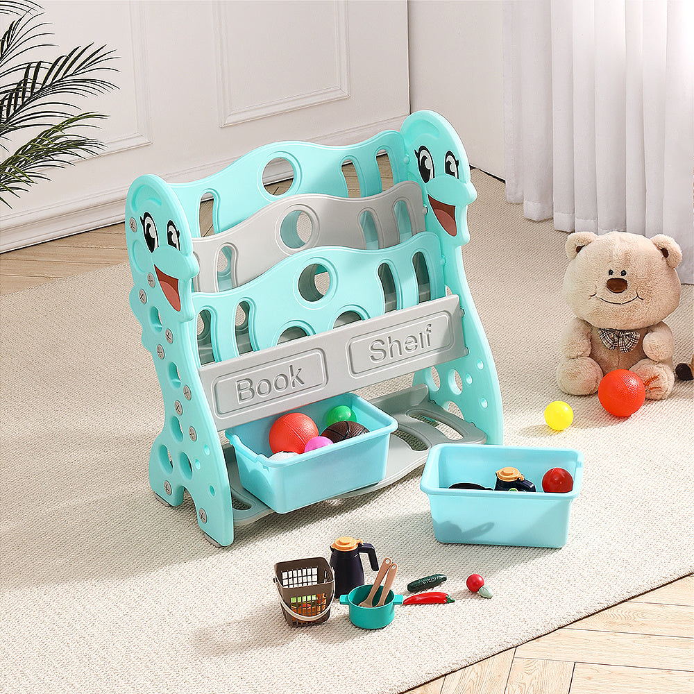 65cm W Green Kids Dolphin Book Rack with Toy Boxes