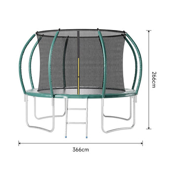 Introduce your children to an active lifestyle with our sturdy and secure trampoline. Made with top-quality steel and foam-covered poles, it includes a safety mesh attached to the jumping area, enabling kids to reach new heights without the risk of landing on firm springs. With options ranging from 6 to 14 feet, it's the ideal choice for all ages to engage in outdoor fun while ensuring safety and enjoyment.