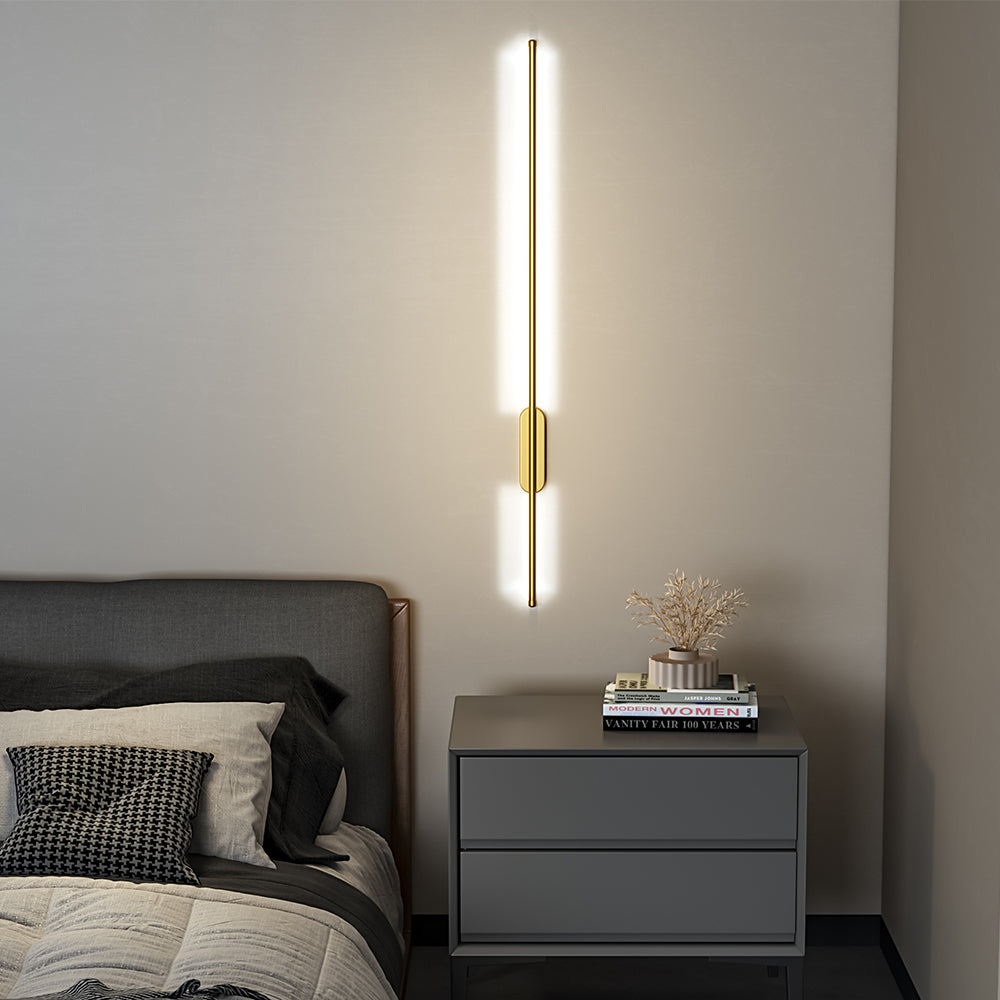 Expertly crafted from high-grade aluminum with a lustrous gold finish, this linear wall lamp exudes luxury. Ideal for enhancing the ambiance of any room, its soft yet bright light can be installed next to your bedside or behind your sofa for a cozy and inviting atmosphere.