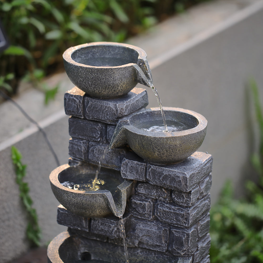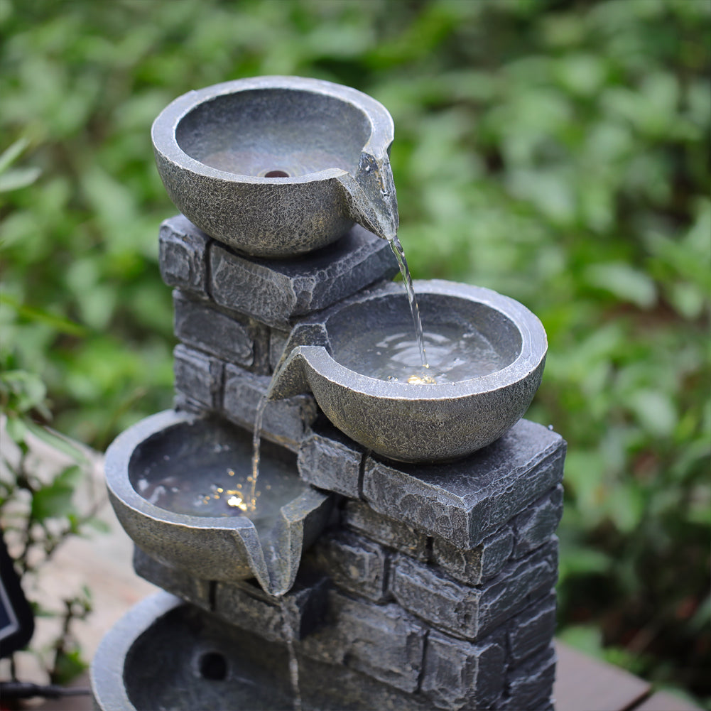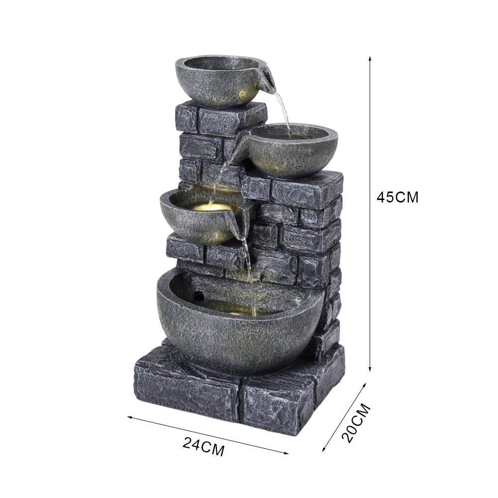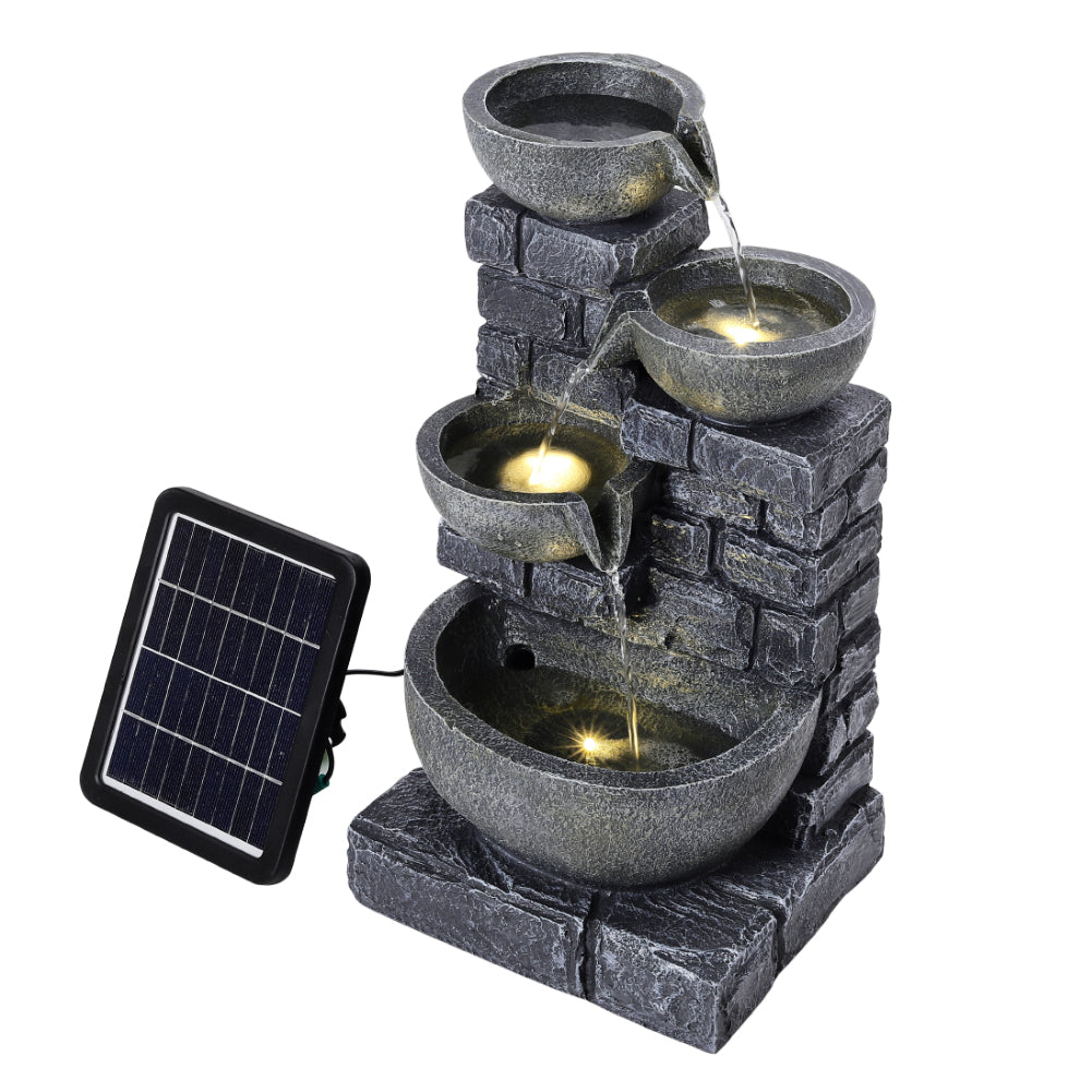 4 Tiers Rustic Solar Water Fountain with LED Lights
