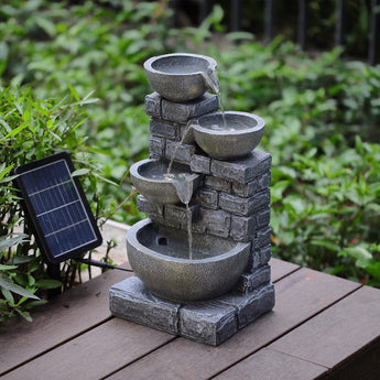 4 Tiers Rustic Solar Water Fountain with LED Lights