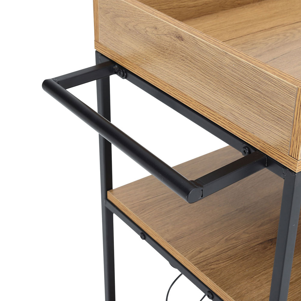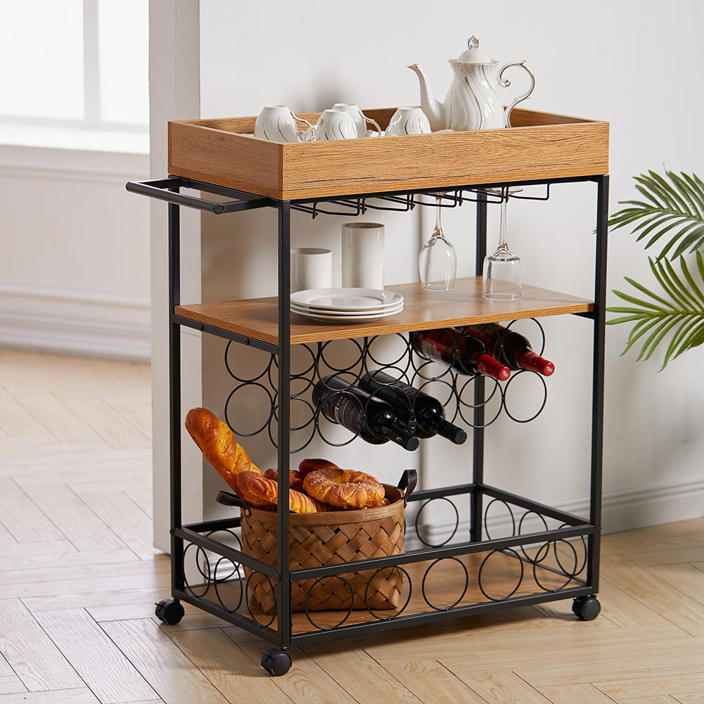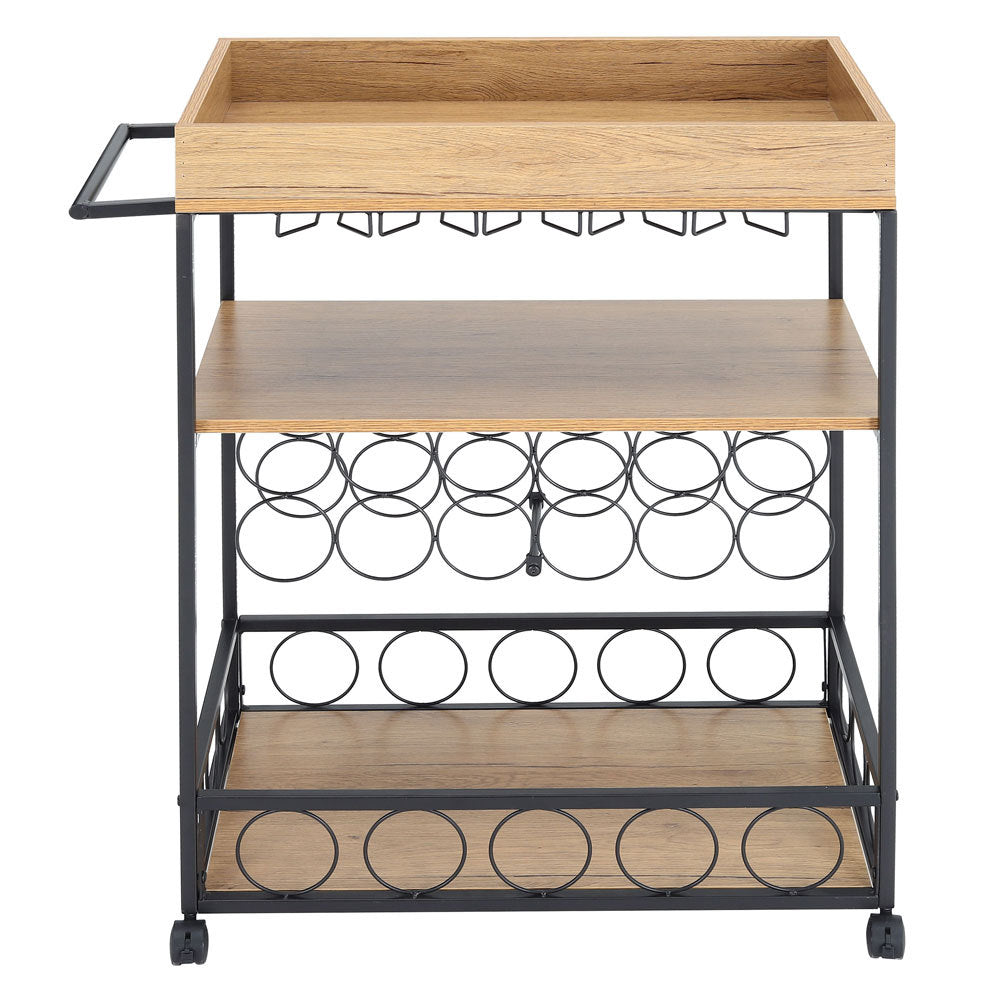 Metallic Rolling Serving Bar Cart with Wine Rack Wood Trolley