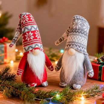 Dolls are a creative and instant way to round out your holiday decorating, this year, try this means out with this gnome set. This set of two standing gnomes is wearing traditional attire of red and grey, adding a splash of color to your space. They are also dressed in matching hats, mittens and stockings with snowflake patterns to blend in with your Christmas decor. Have them settled on your shelf or mantel for some extra holiday spirit.