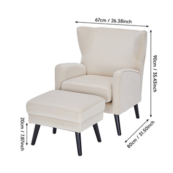 Multifunctional Velvet Upholstered Armchair with Footstool
