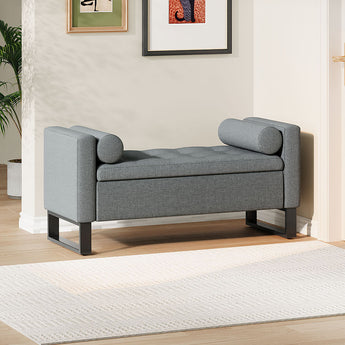 Grey Linen Upholstered Storage Bench