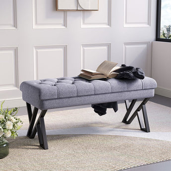 For a soft spot to sit on, the top of this Livingandhome bench is wrapped in linen upholstery with a solid hue. This piece of furniture has the subtle detail to be a well-appreciated addition to any room, from the vintage button tufting top to the cross legs. Wherever it is you need an extra place to sit, the living room, bedroom, foyer, or entryway, this bench fits right in.